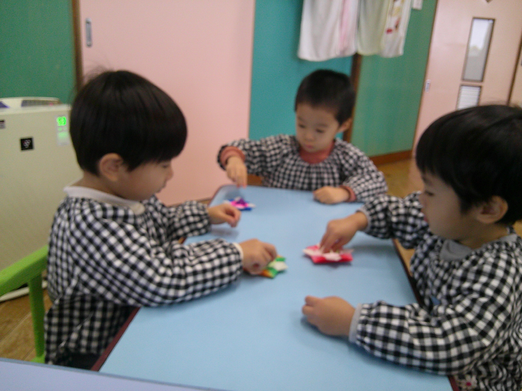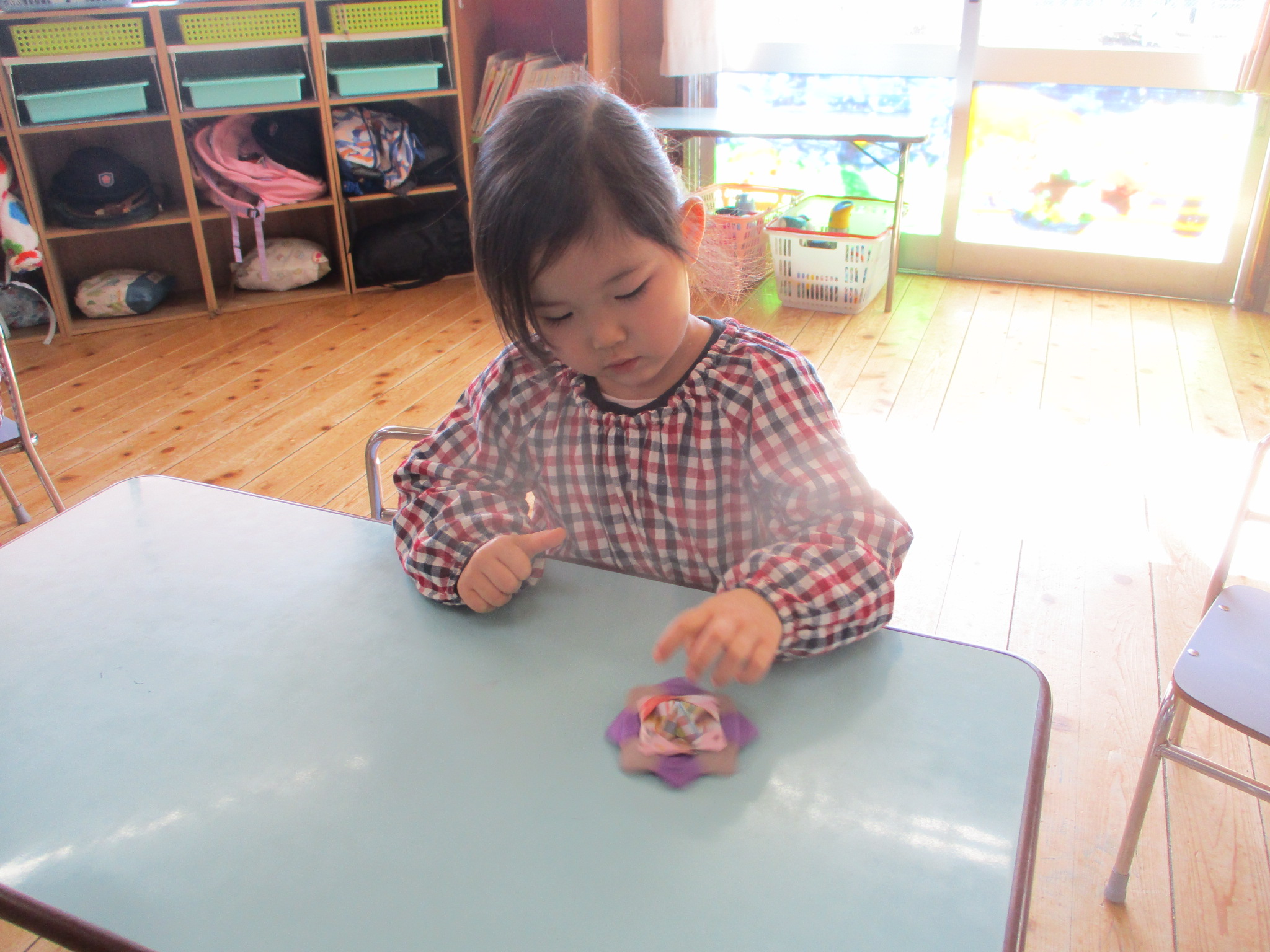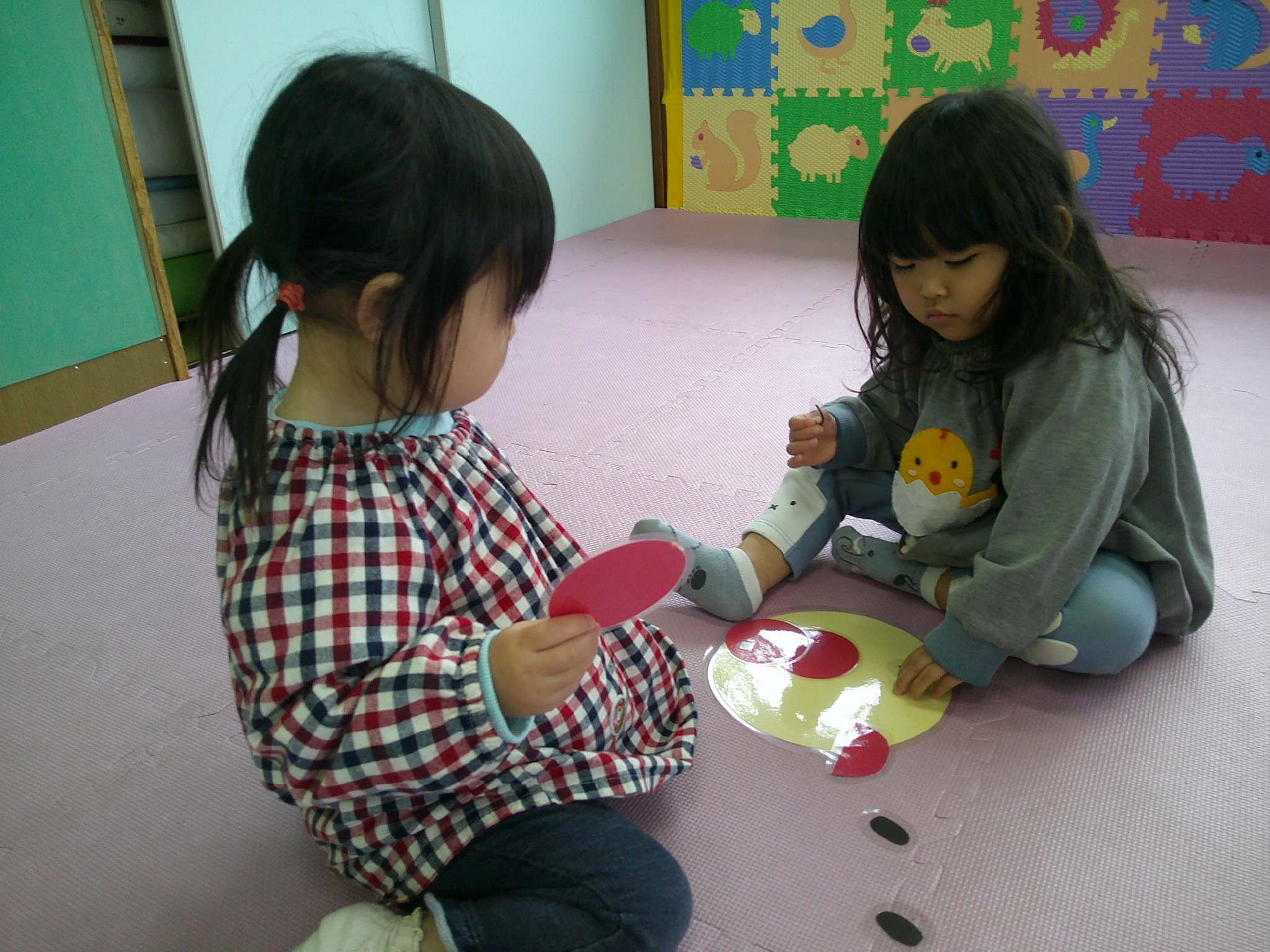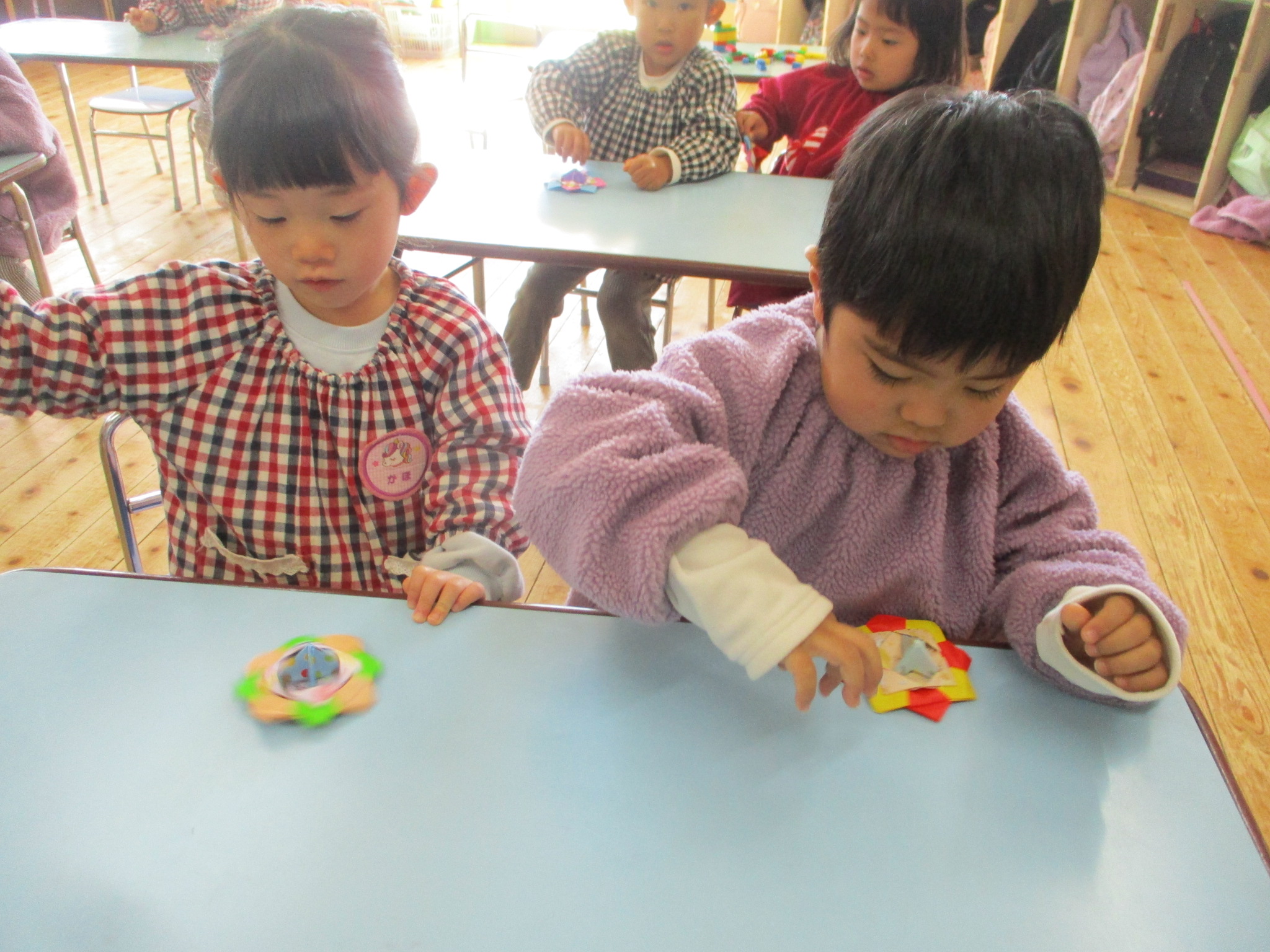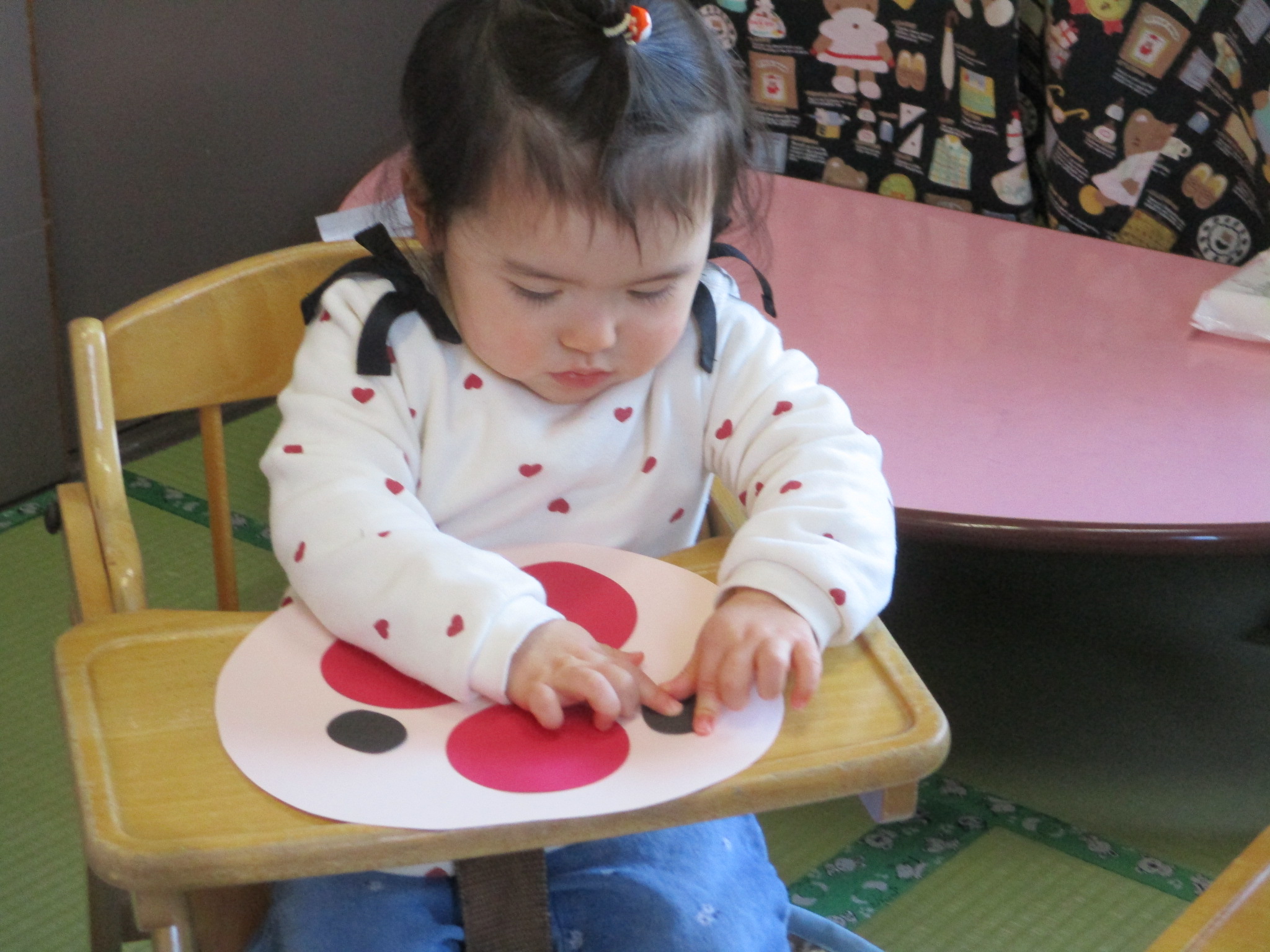 思いの向くまま楽しそうに貼る子や、ひとつひとつ考えながら貼る子など同じ素材でもそれぞれ