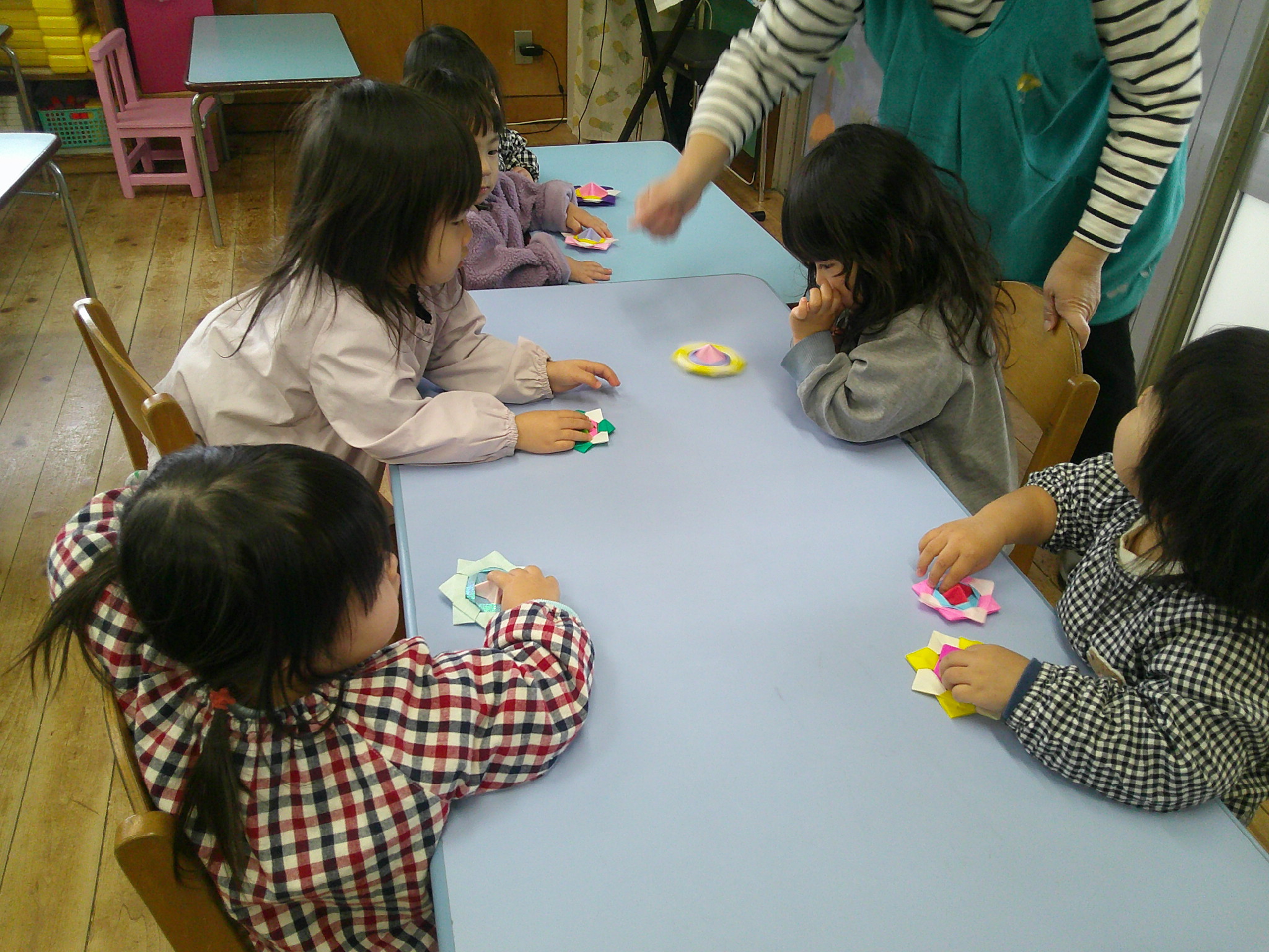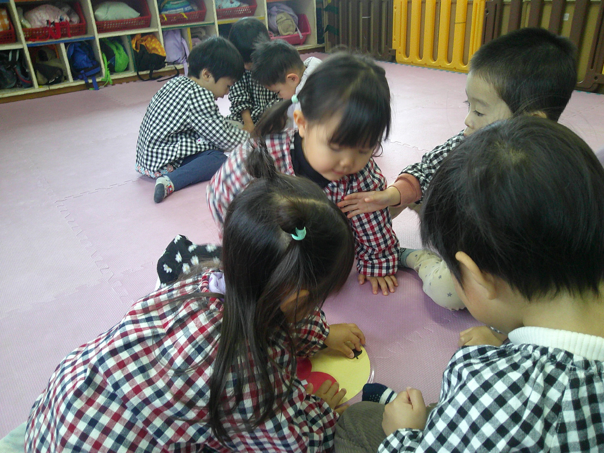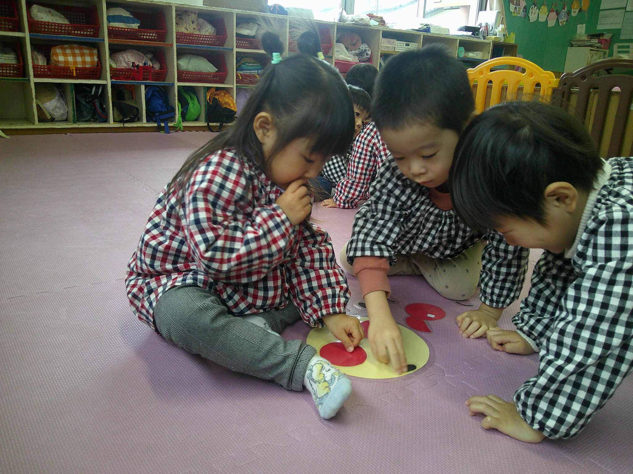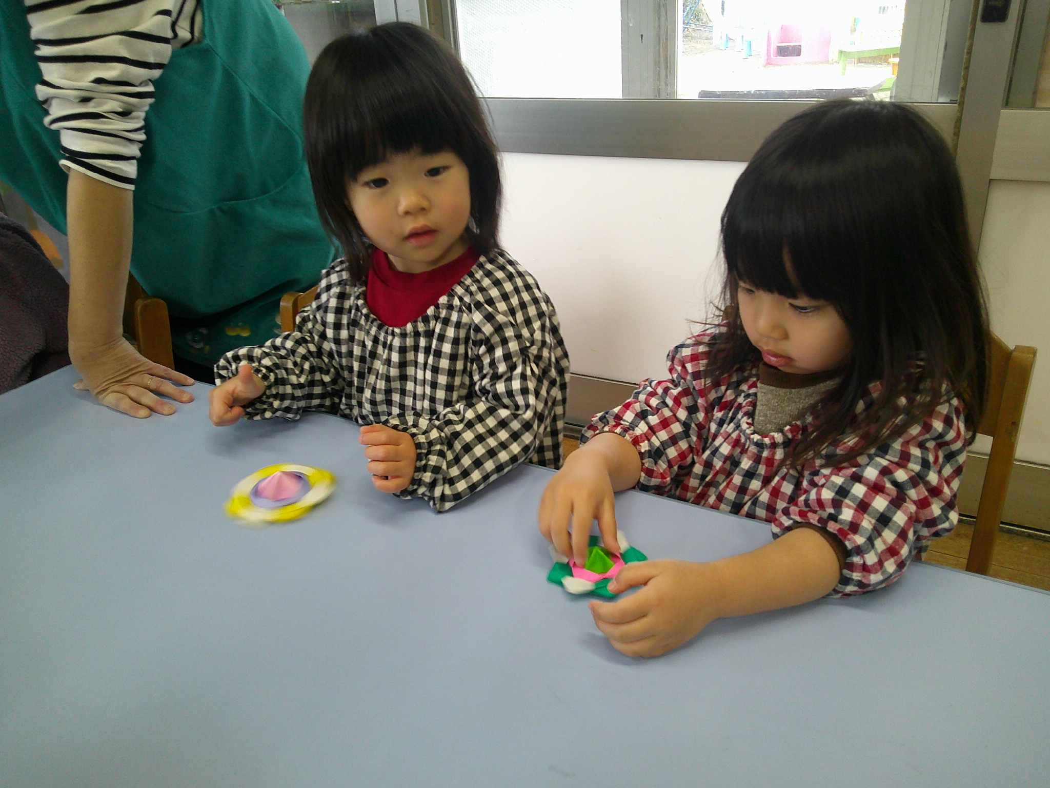 思いの向くまま楽しそうに貼る子や、ひとつひとつ考えながら貼る子など同じ素材でもそれぞれ