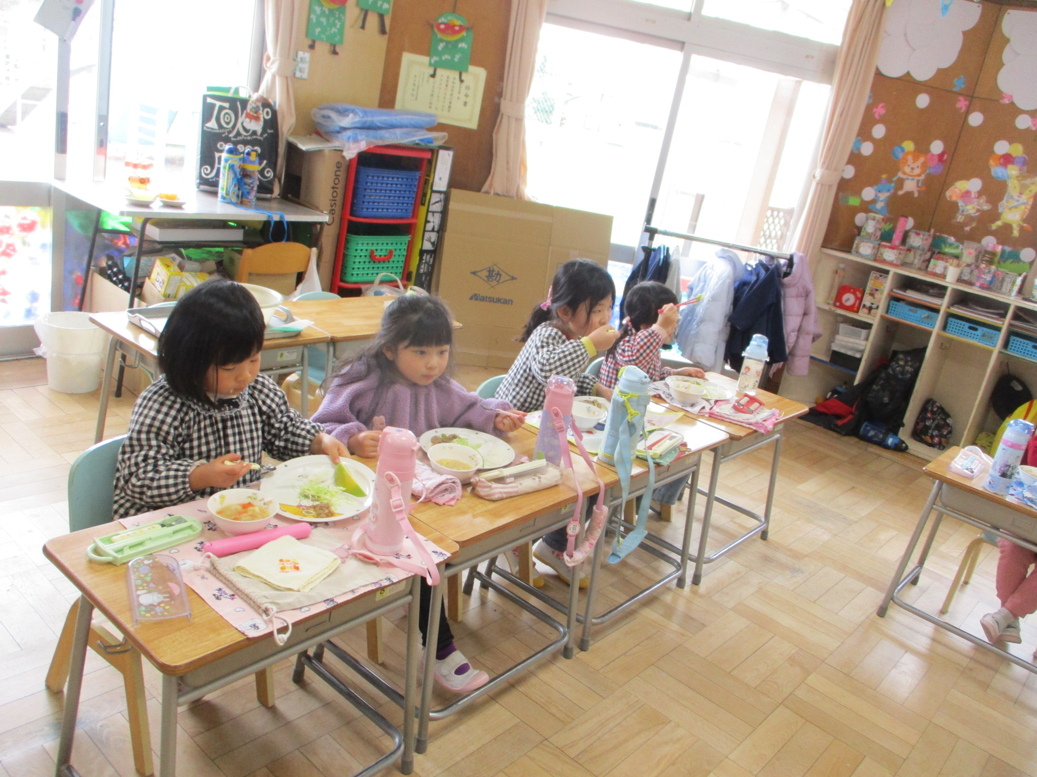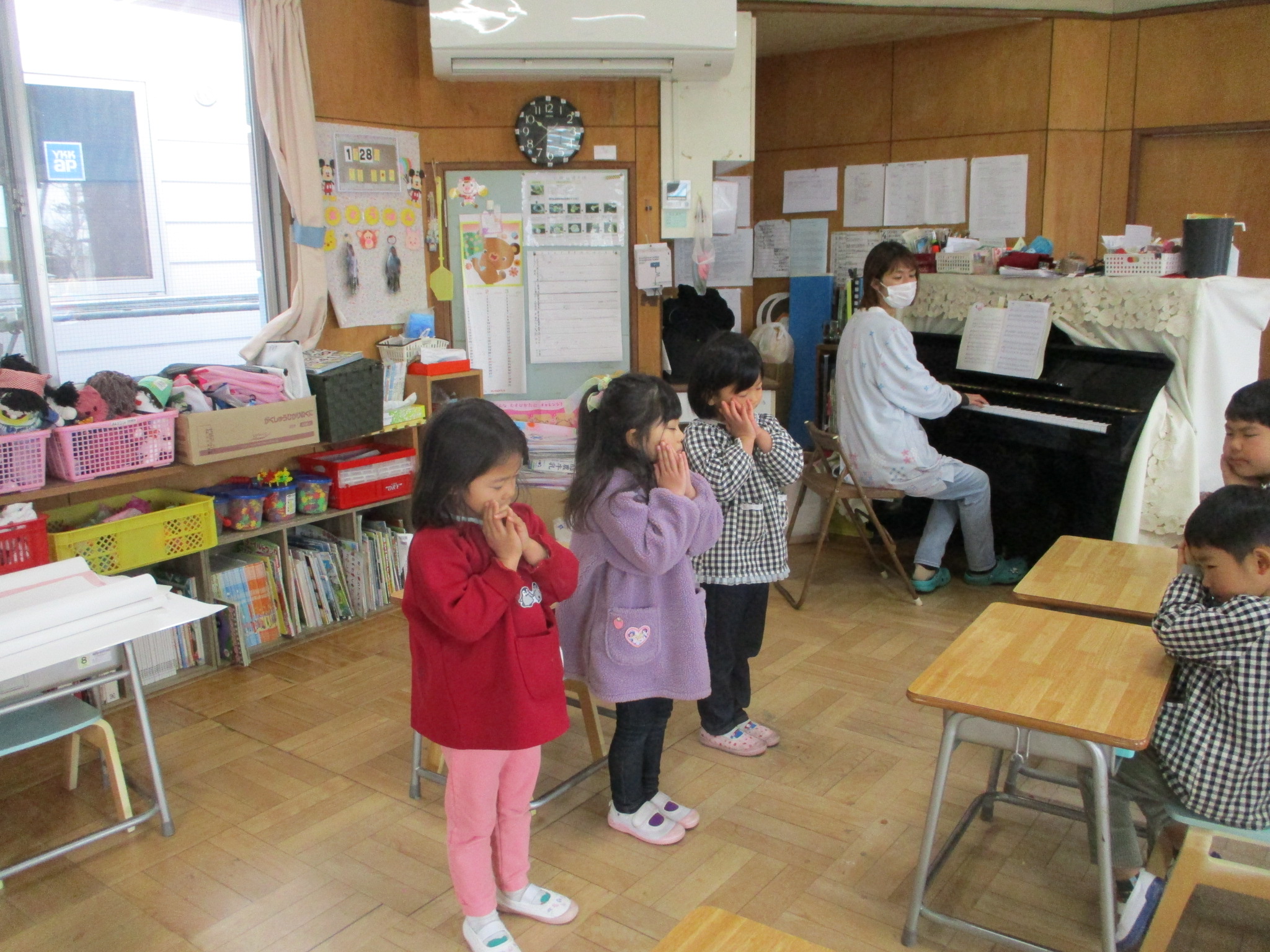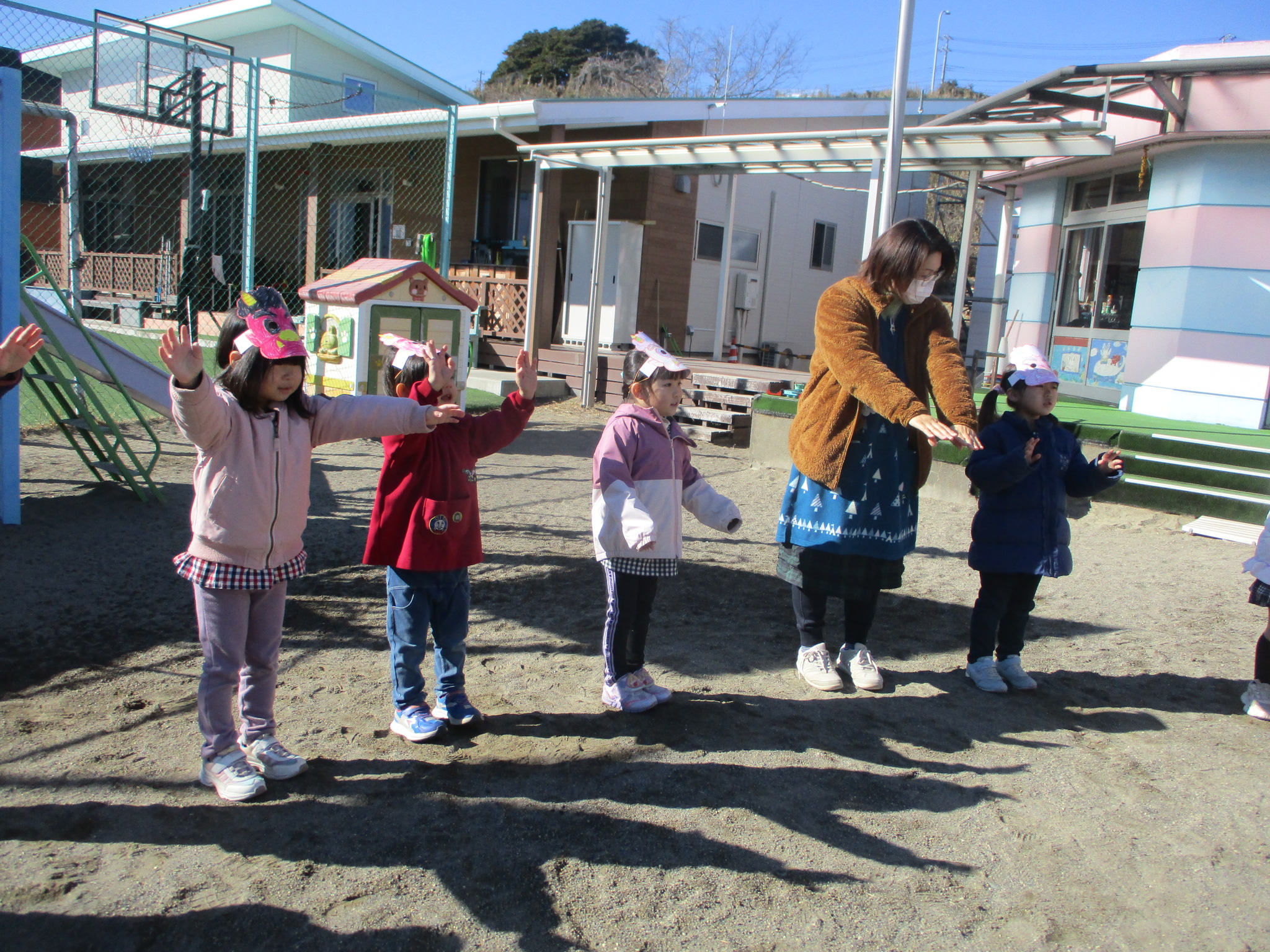 豆まきのお歌、お遊戯も楽しんで覚え、踊ってくれました。