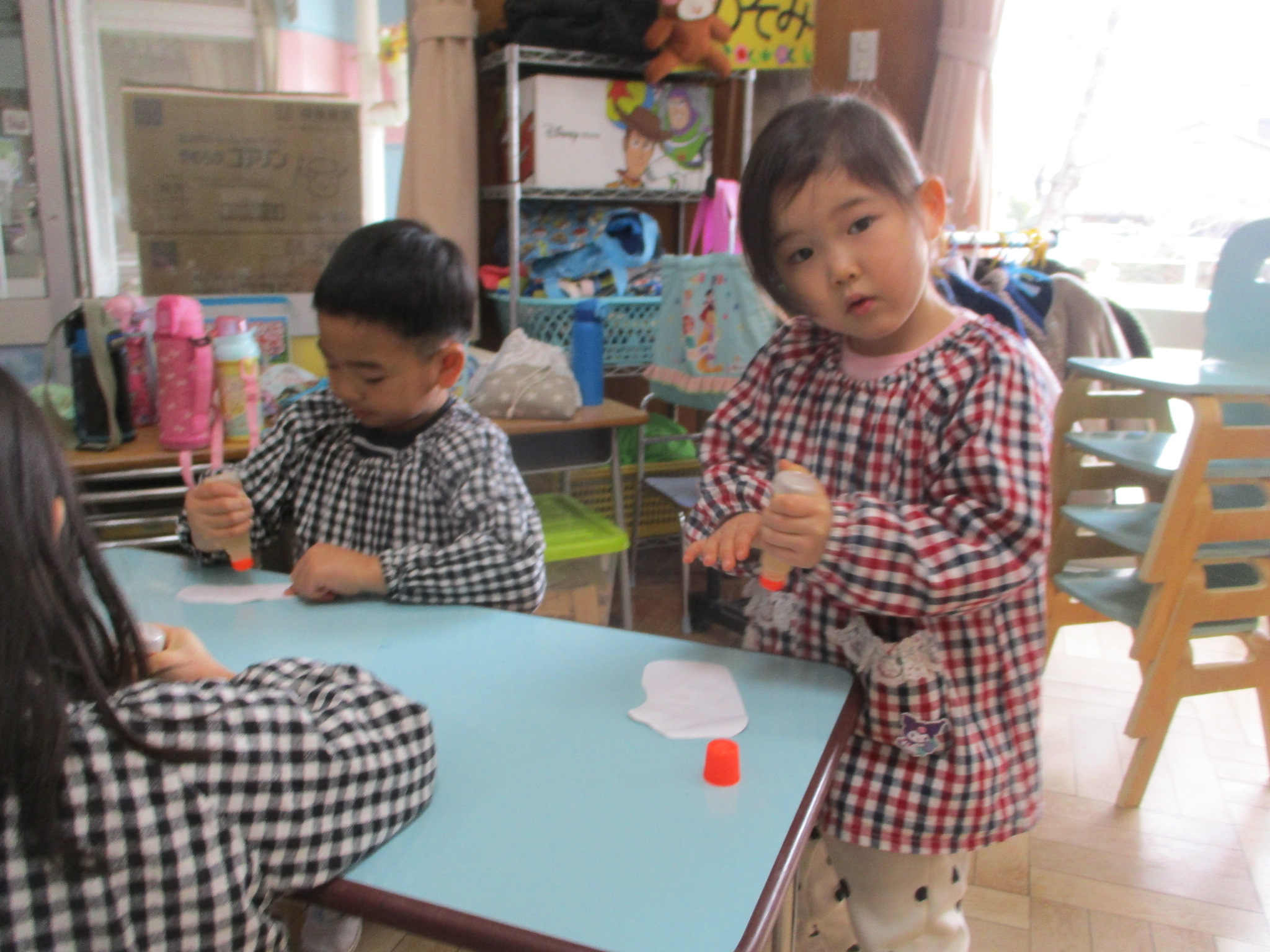難しく苦戦していましたが、援助しながらできると嬉しそうな表情を見せてくれます。