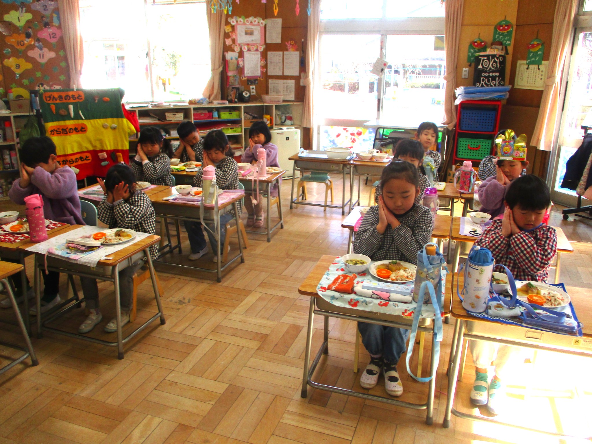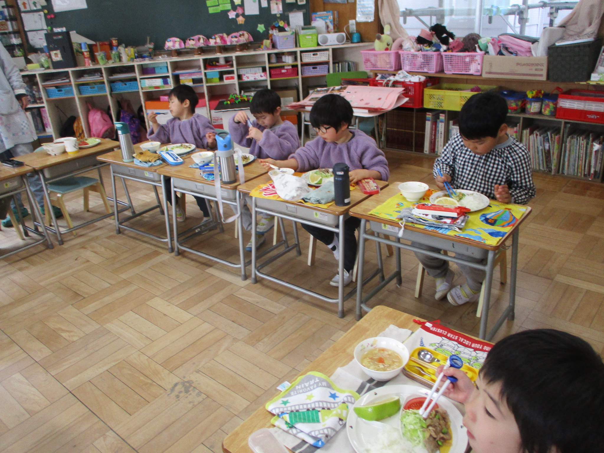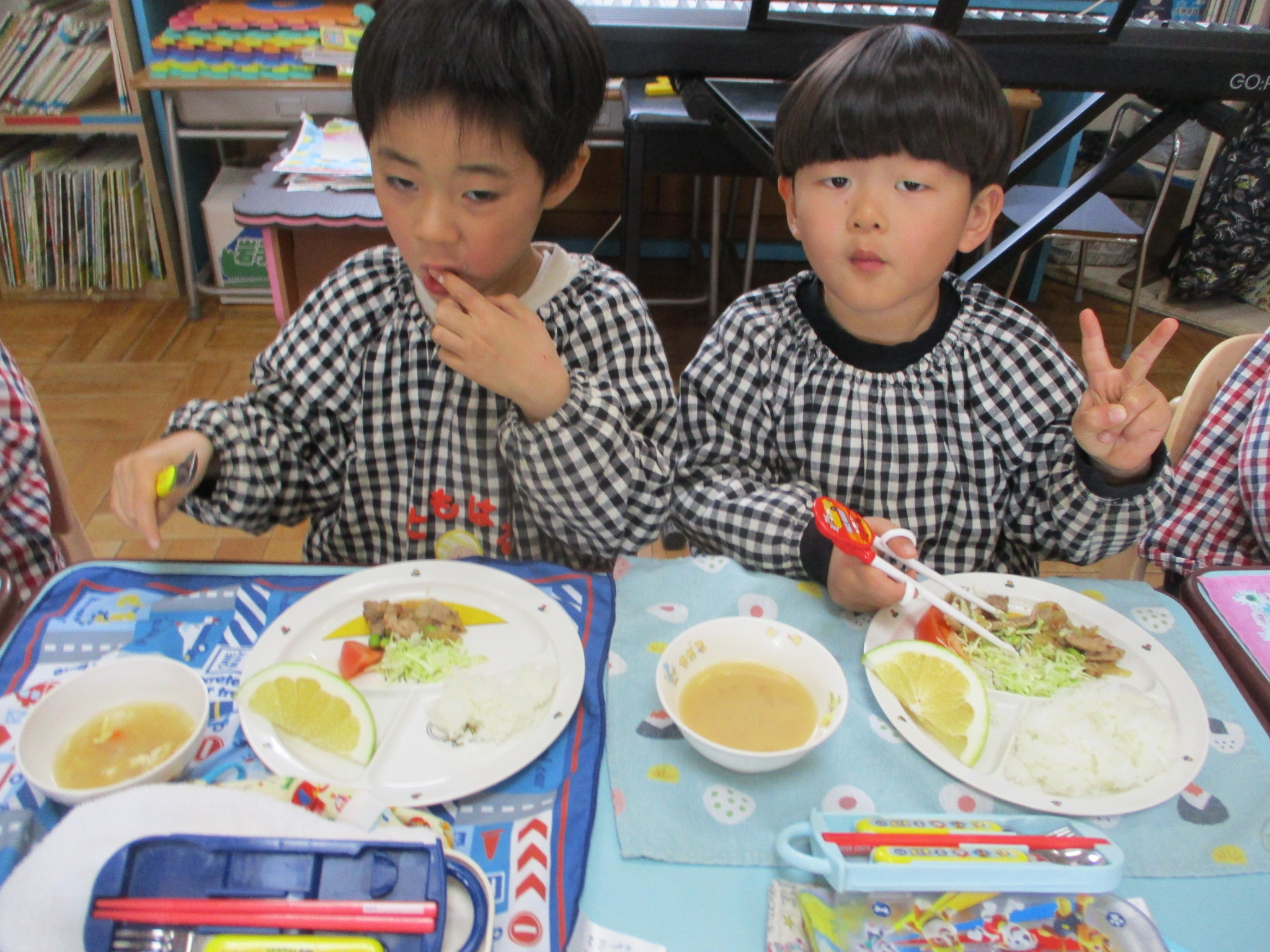 「これはうさぎ!」「これはブリッジ!」など、リトミックの項目ごとにまとめたり、給食を食べている様子をまとめたりと、上手に貼りつけられました。