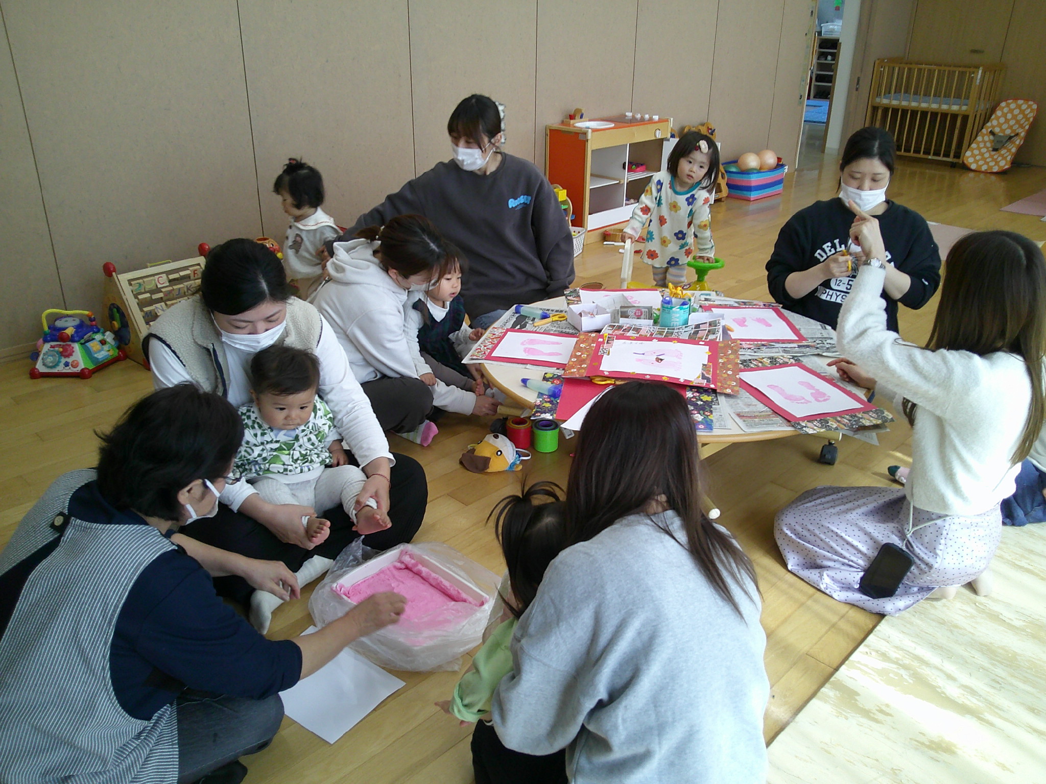 今日は足型スタンプでお雛様を作りました。