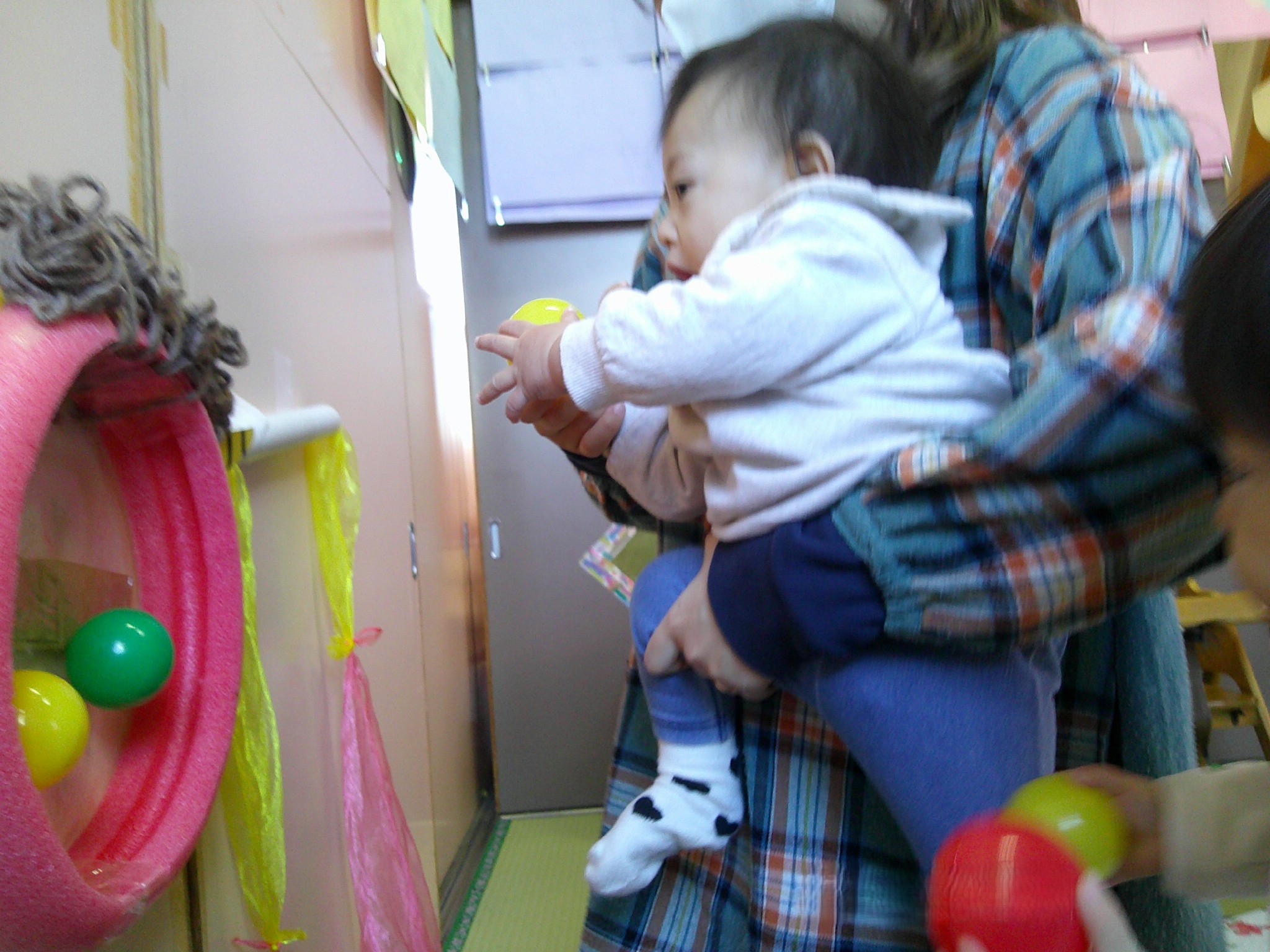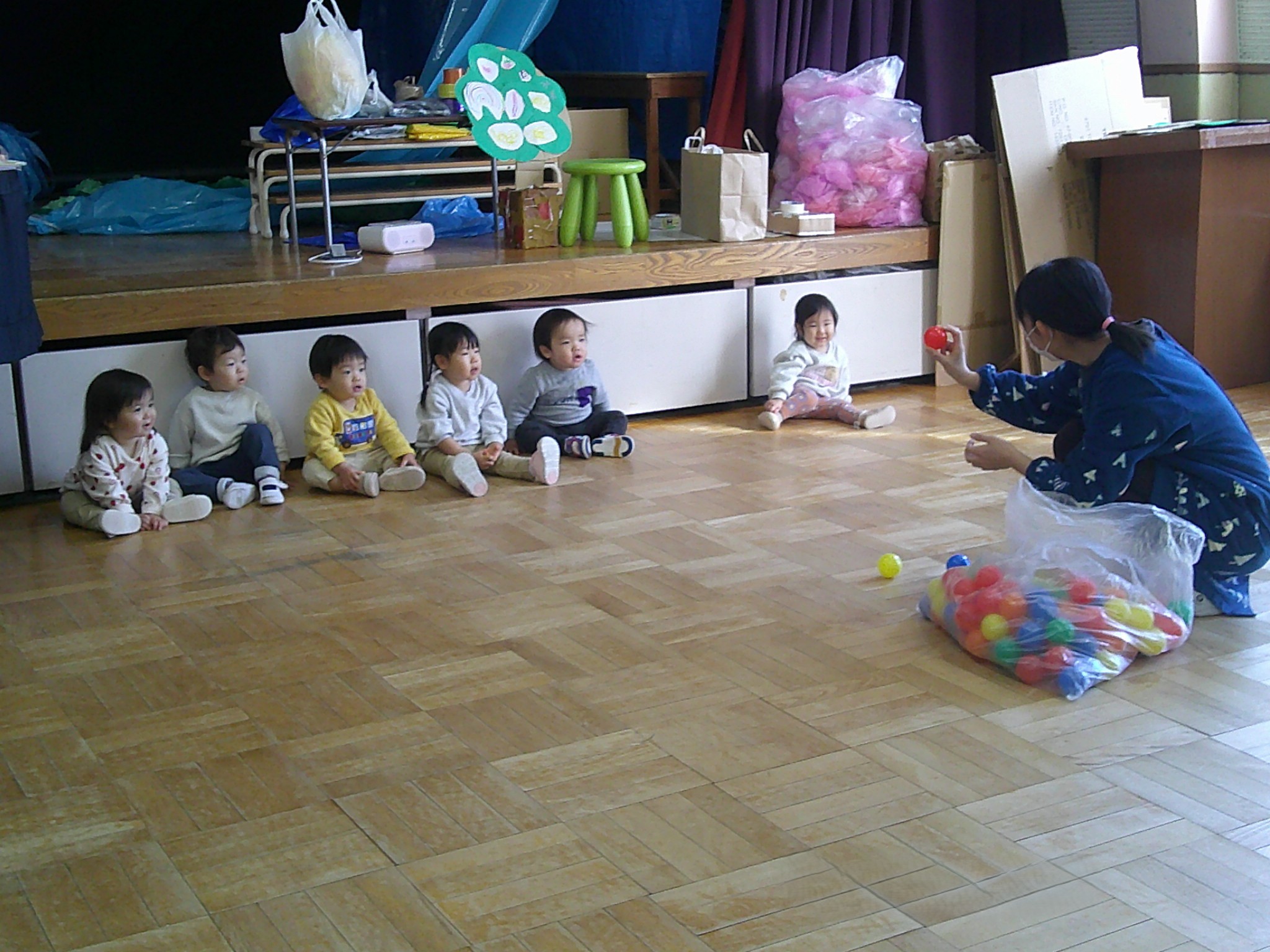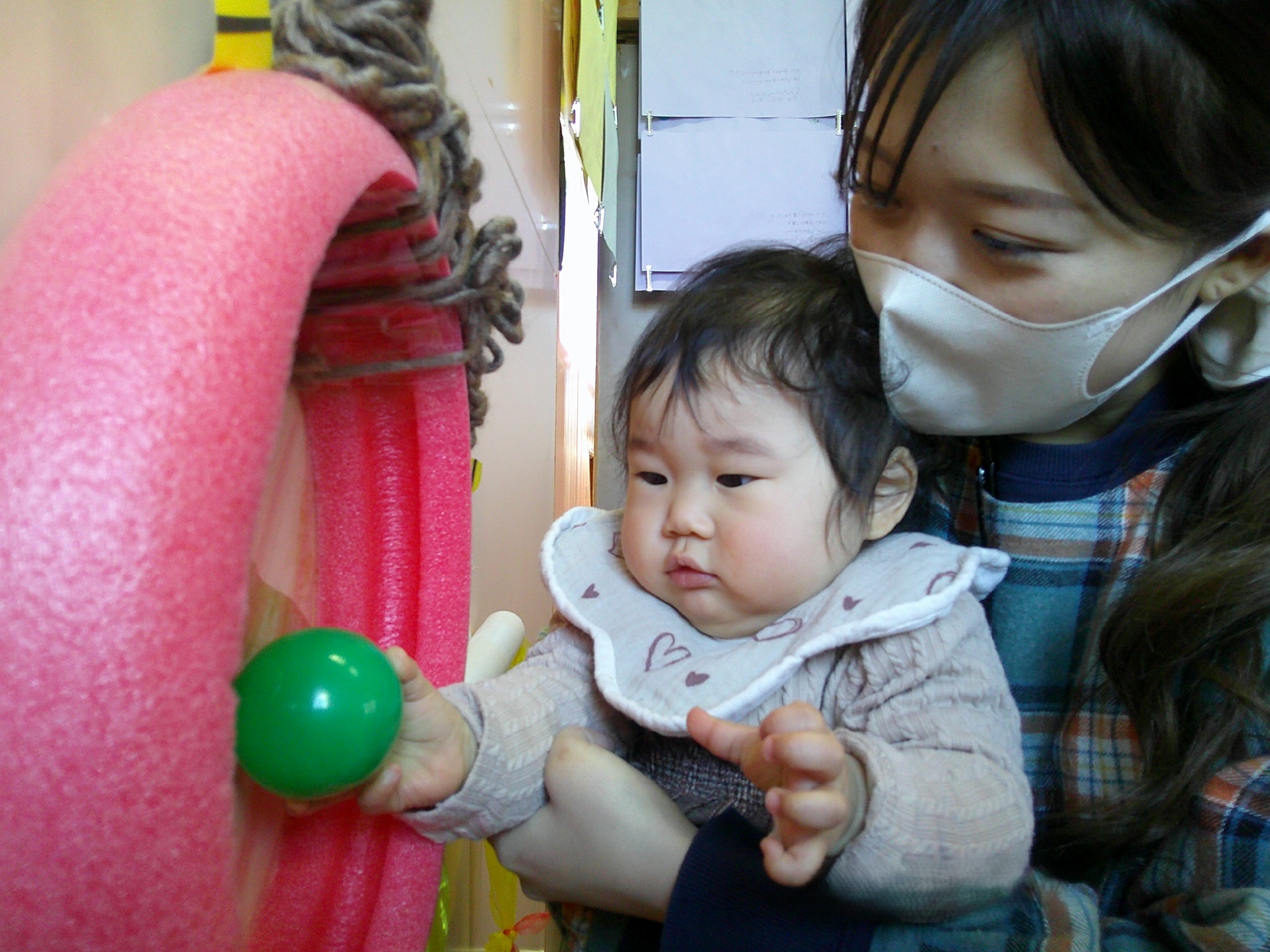 ボールをぎゅっとつけるたびに「ワァ~」と声を出したり、拍手をして楽しんでくれるこども達です。