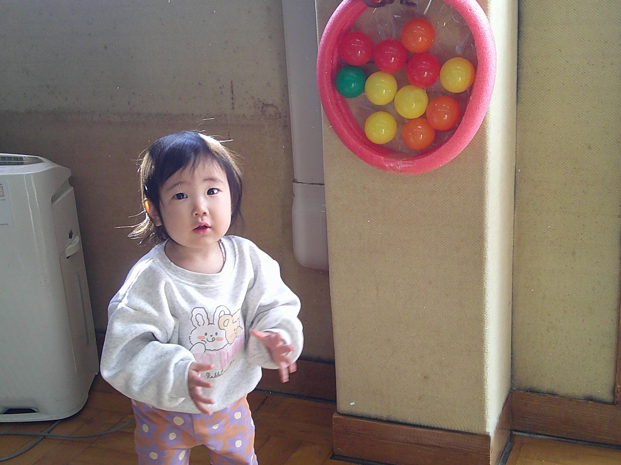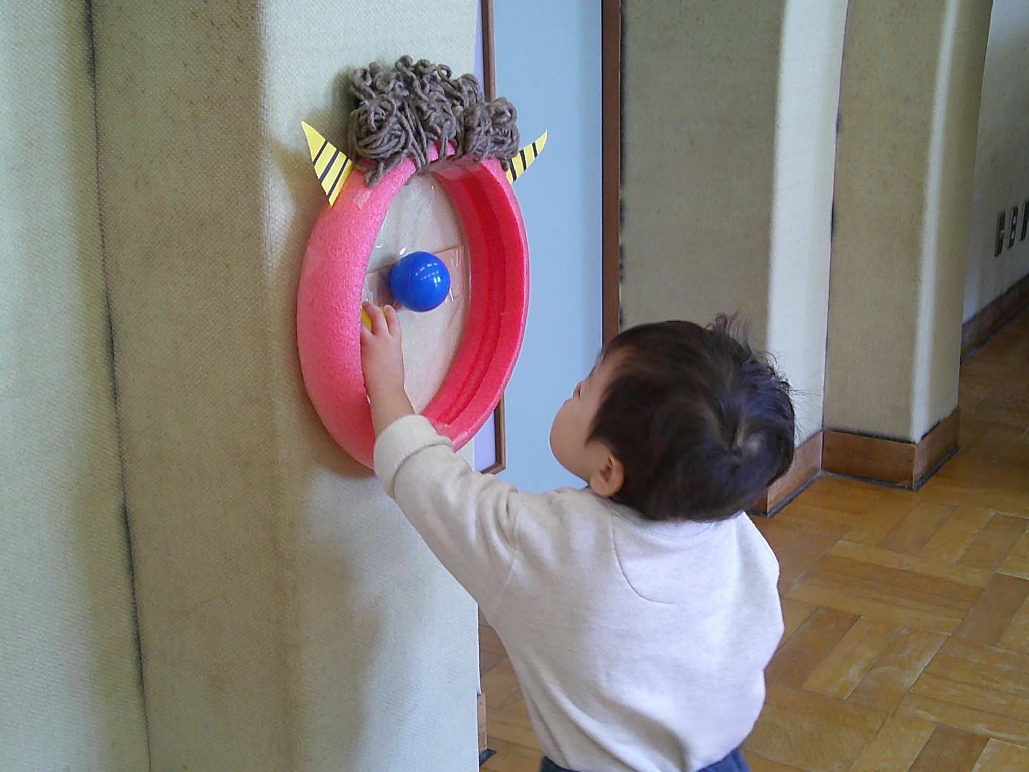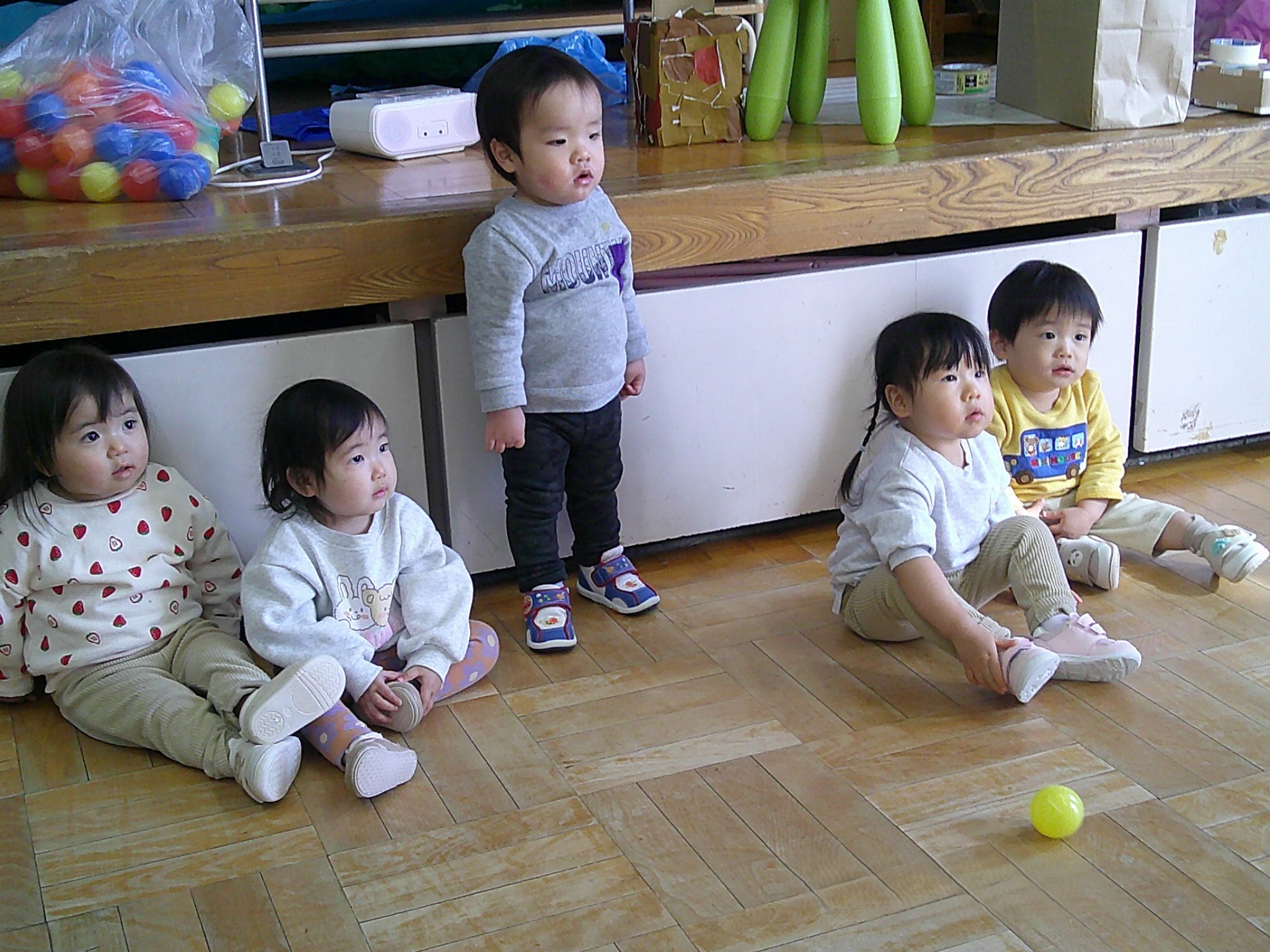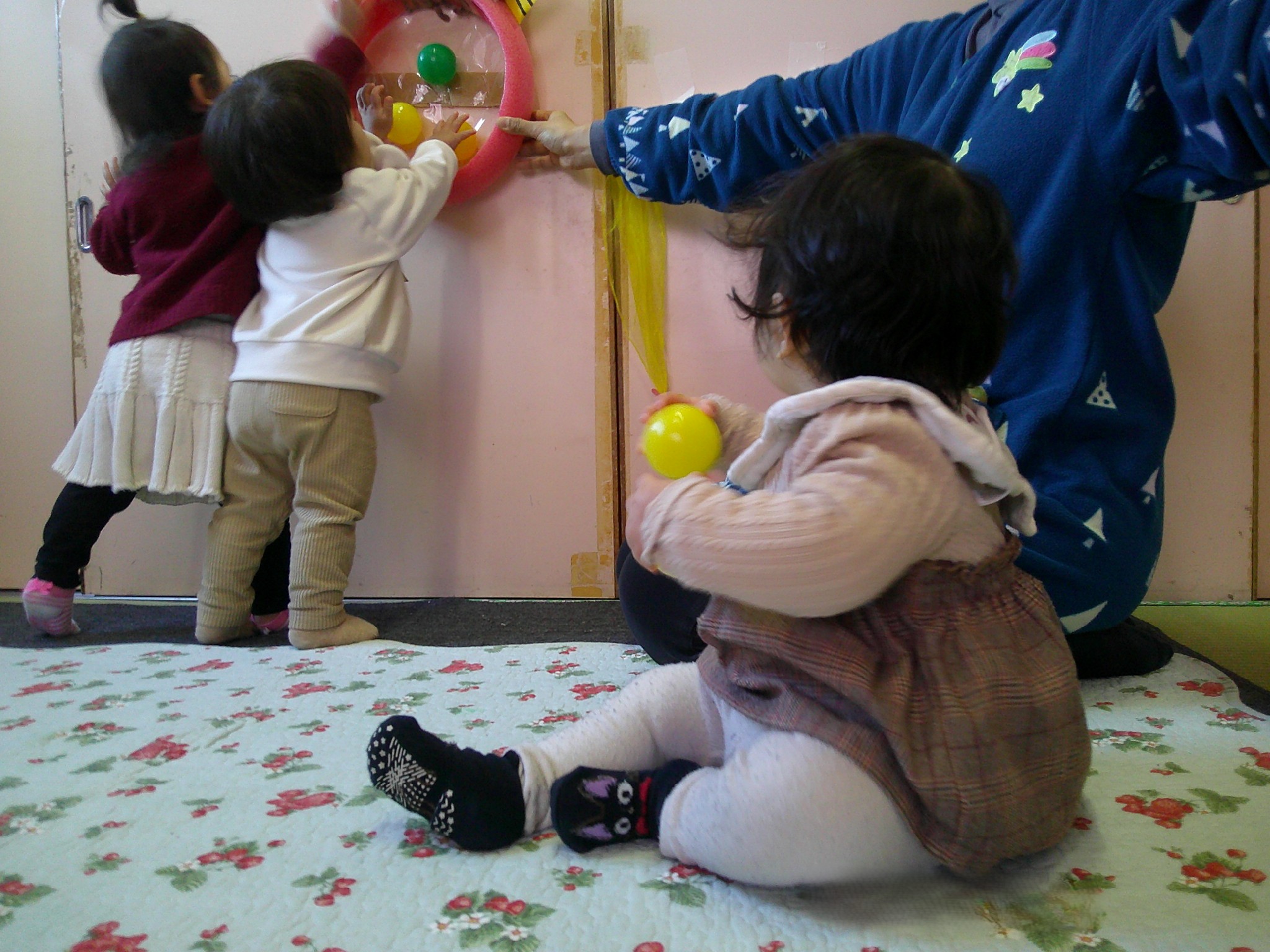 ボールをぎゅっとつけるたびに「ワァ~」と声を出したり、拍手をして楽しんでくれるこども達です。