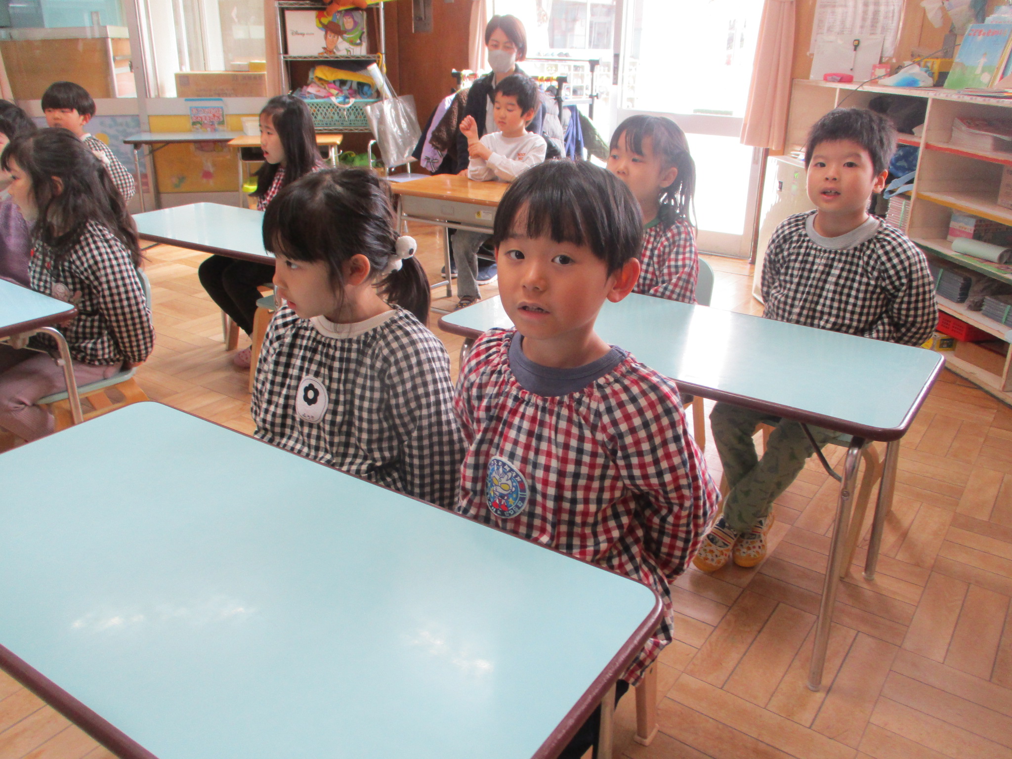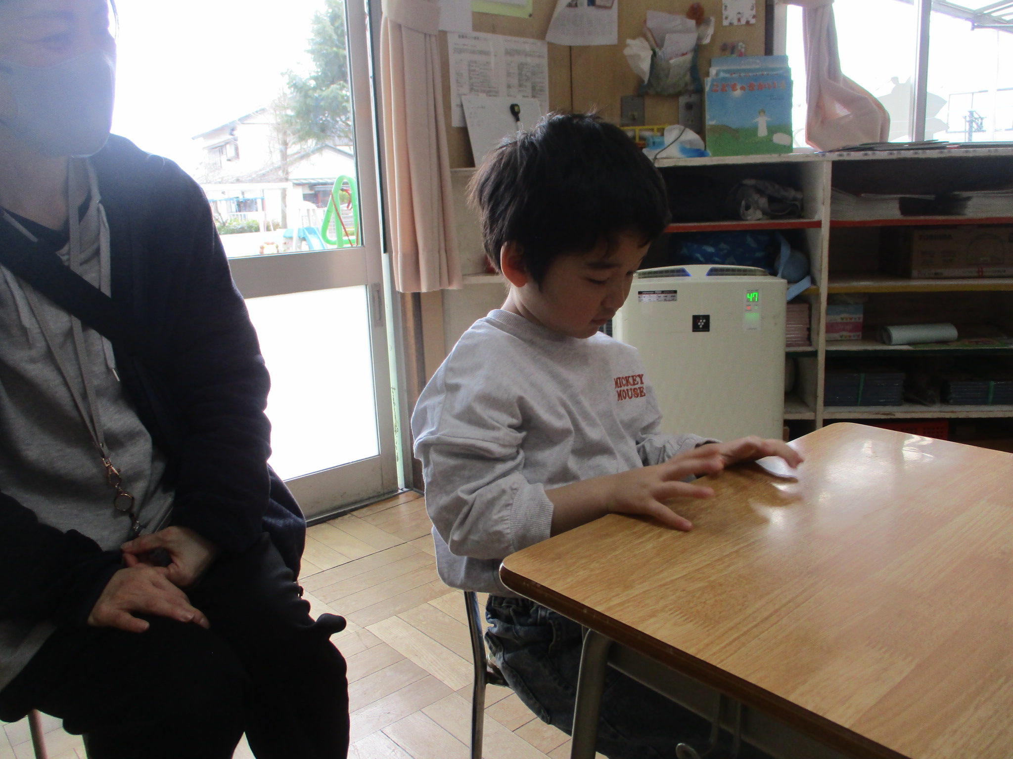 食品群について教えて貰う際、発表すると「すごい」「素晴らしい」と褒められて得意げな光さん。