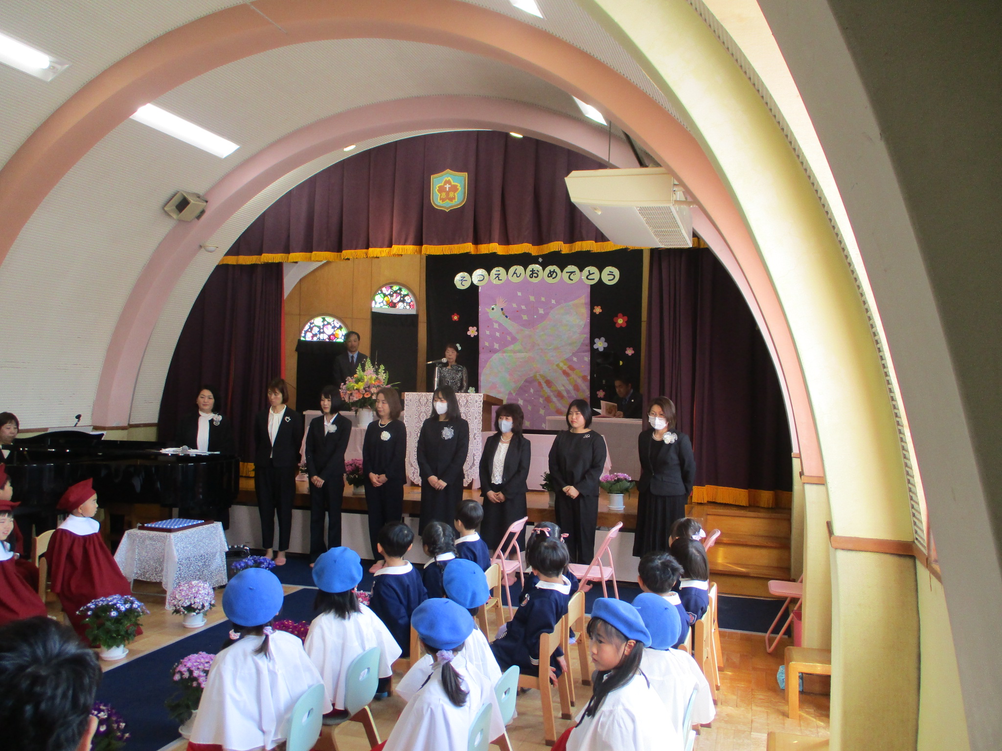 ご父兄の皆様、日頃より園の保育方針に深いご理解とご協力を頂きまして、今日の良き日を迎えられたことに深く感謝致します。