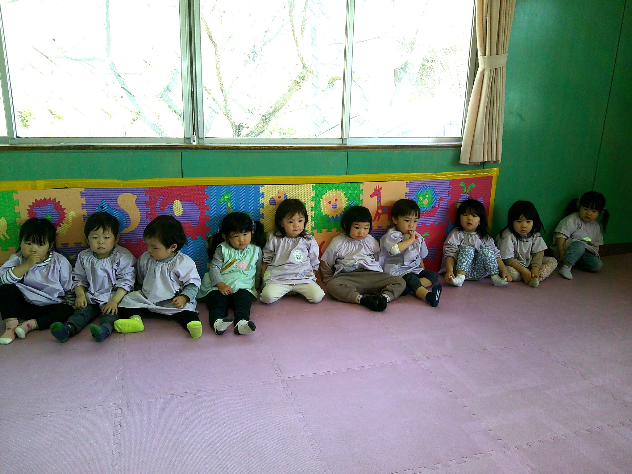 めぐみの組は男の子1名、女の子7名、計8名のクラスで1歳3か月~2歳のお友達が同じ保育室で過ごしています。今年度から新しい保育室となりましたが、こども達も楽しみながら慣れていっている所です。