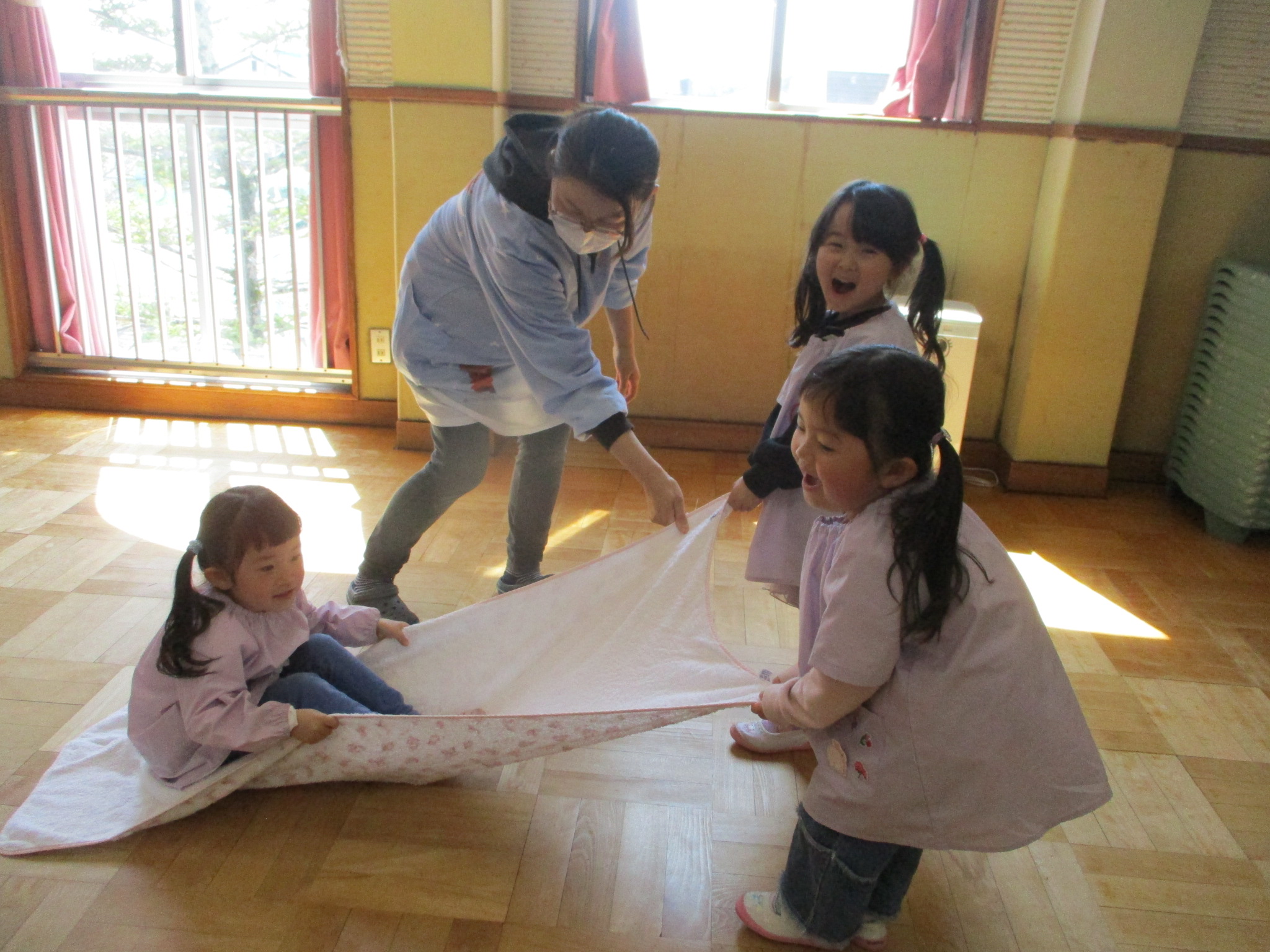 楽しく安全な環境の中で健康に過ごせるように、一人ひとりの気持ちに寄り添い、スキンシップを大切にしたいと思います。