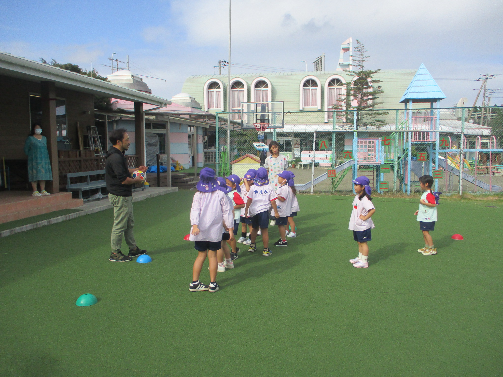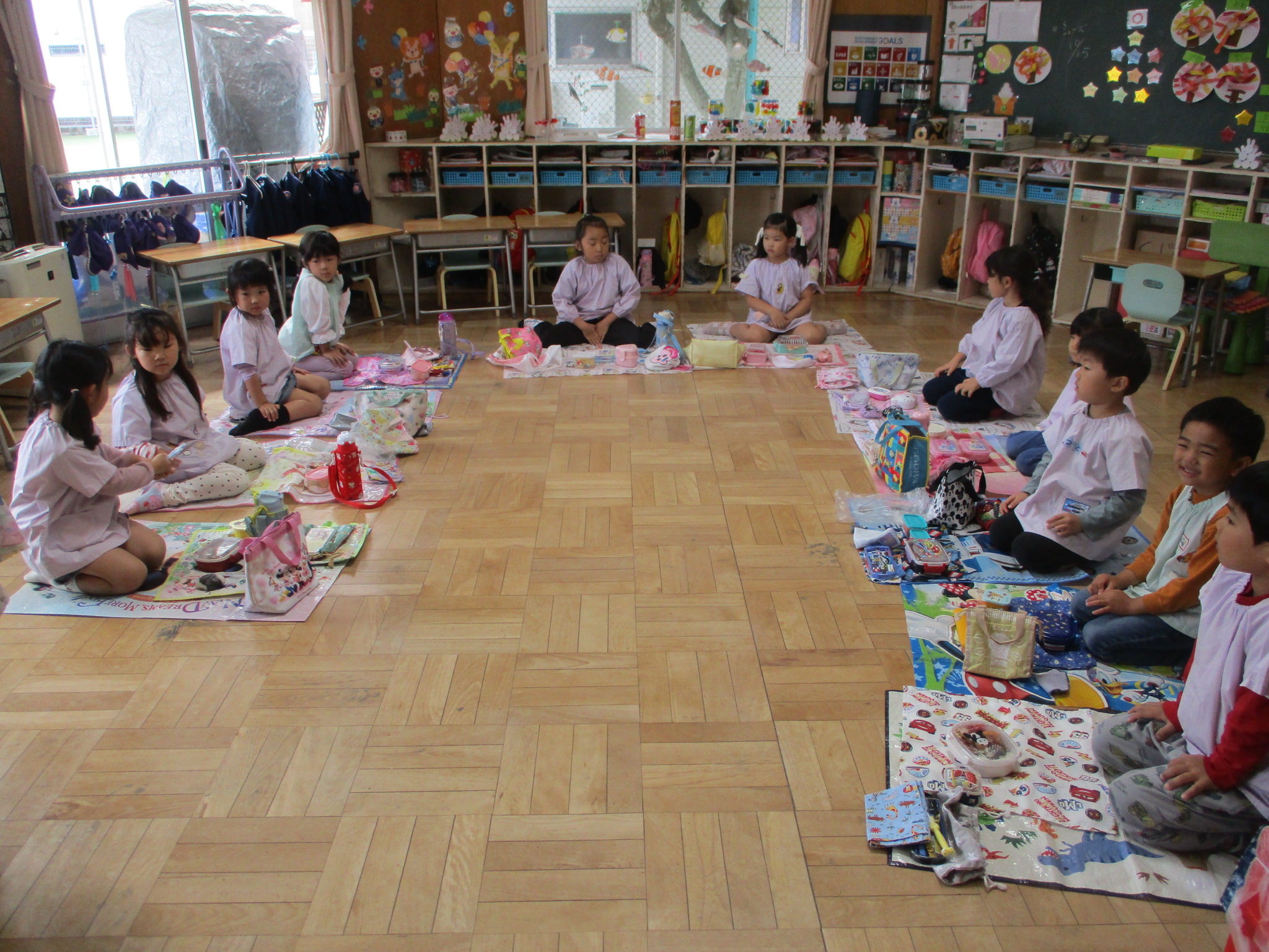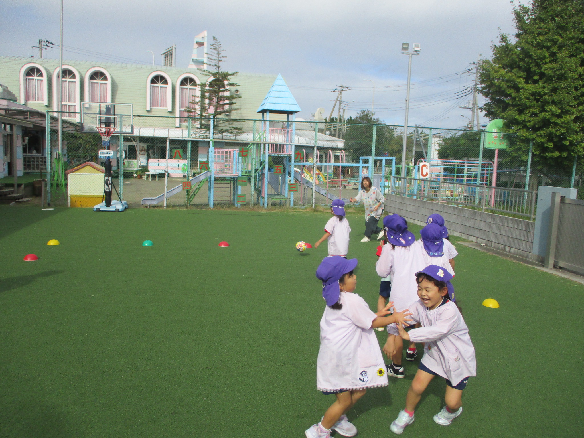 マラソンをしてから転がしドッジボールを楽しみました。