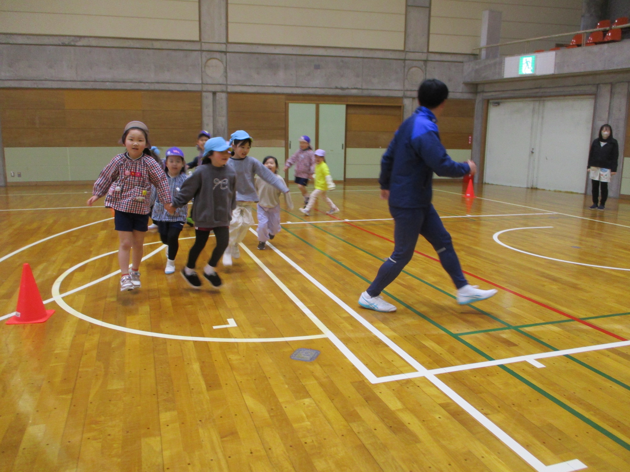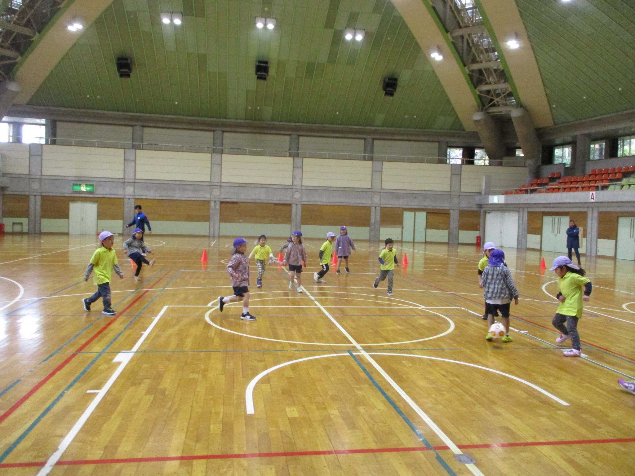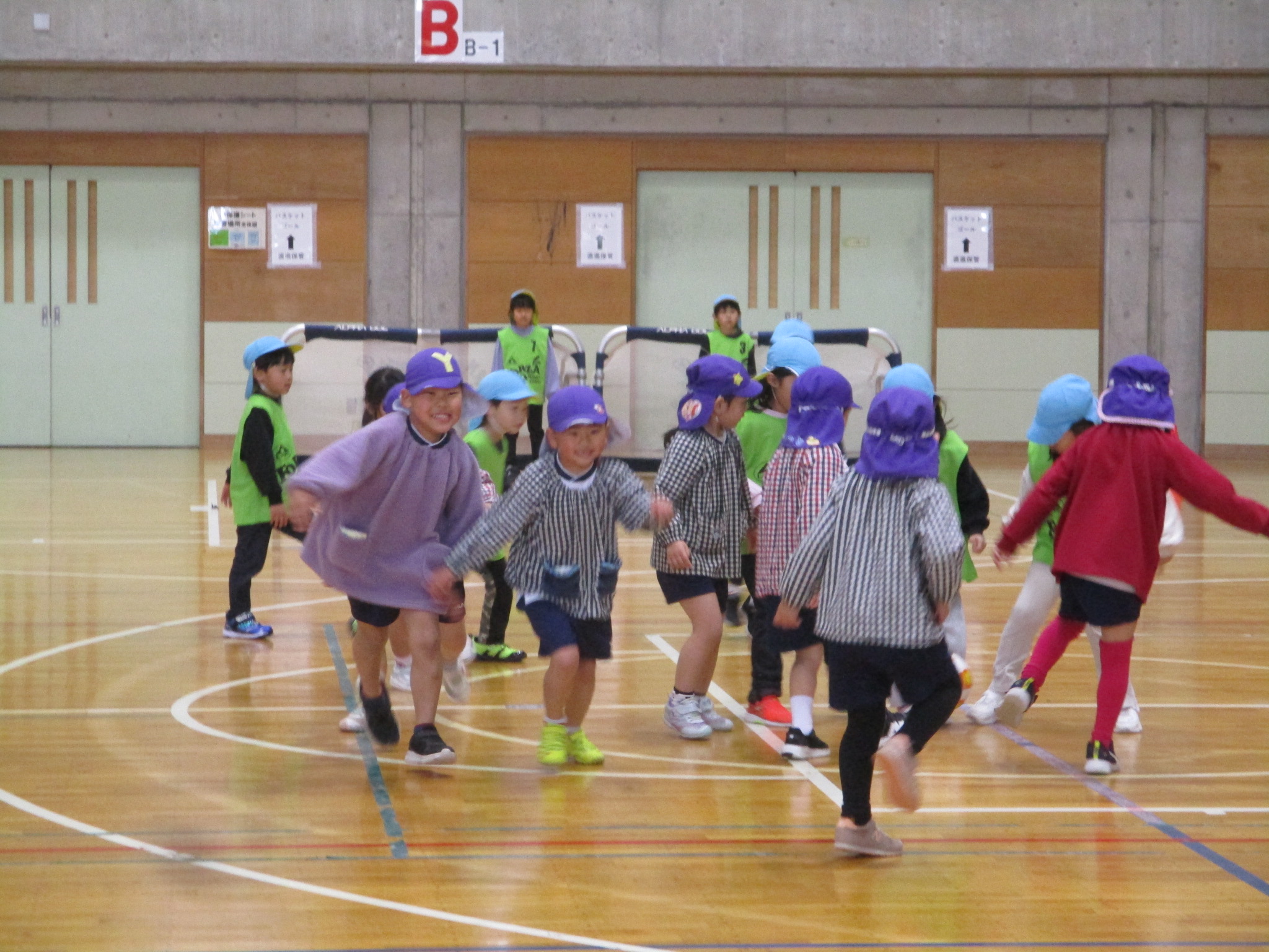 後半は各園対抗で試合を行い、なかなかシュートが決まらずでしたが、みんな一生懸命ボールを