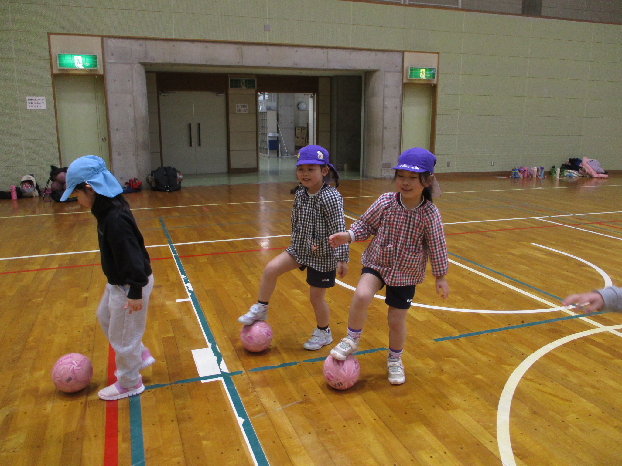 前半は3つのグループに分かれて、ボールを使って体を動かす体験でした。