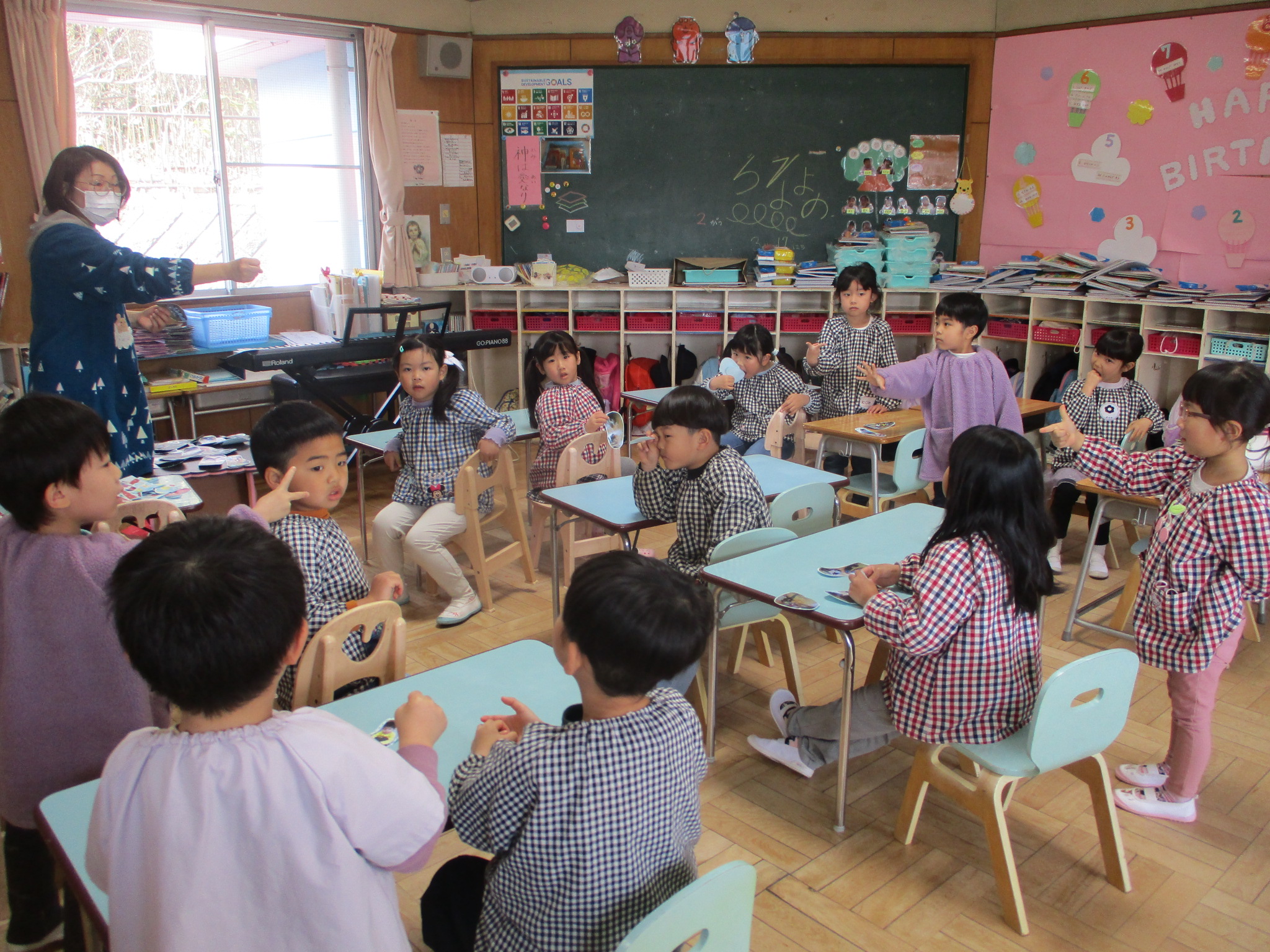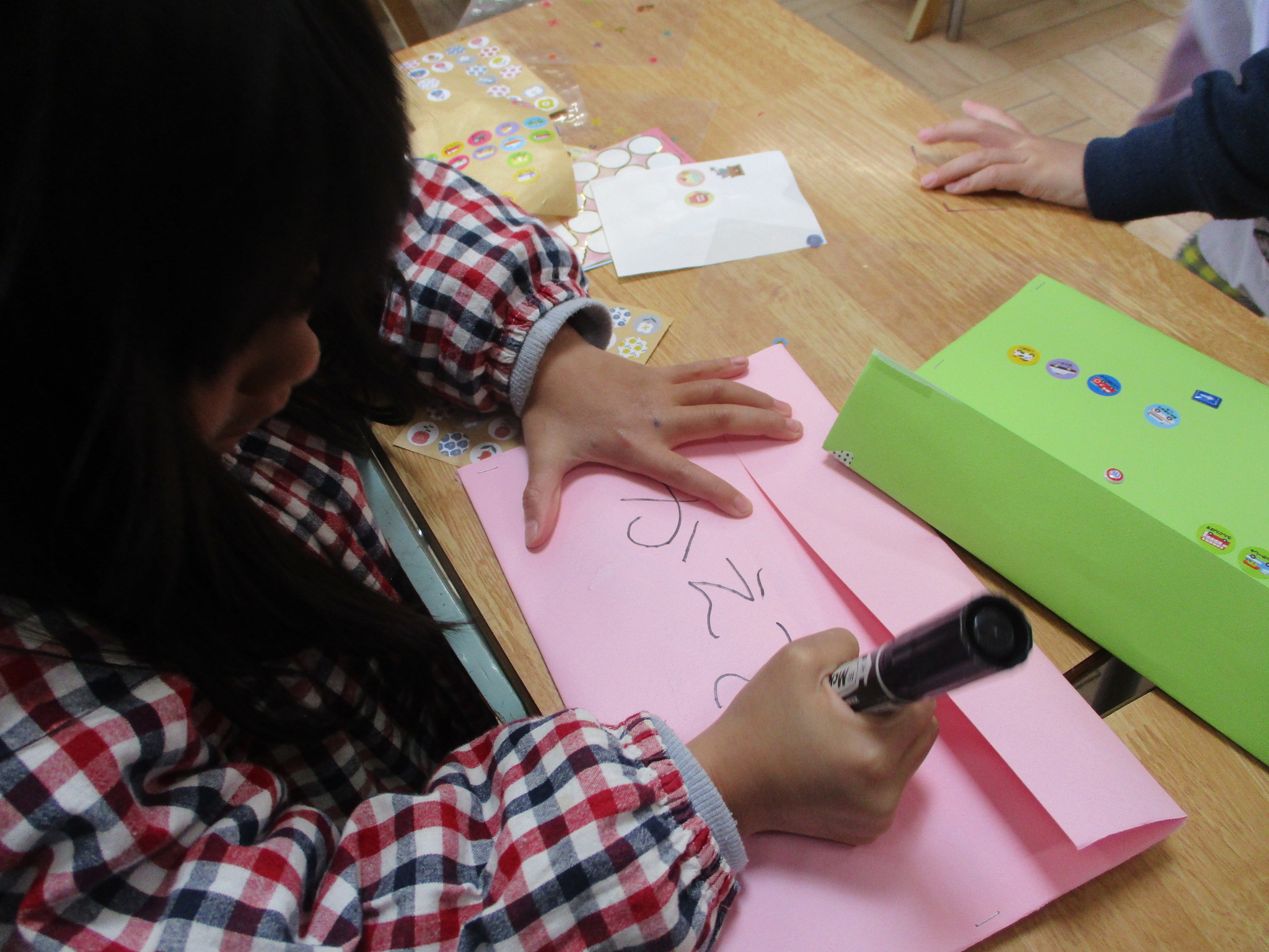 それぞれ好きな模様を描いたり絵を貼ったりして可愛く仕上げ、楽しい時間を過ごせました。