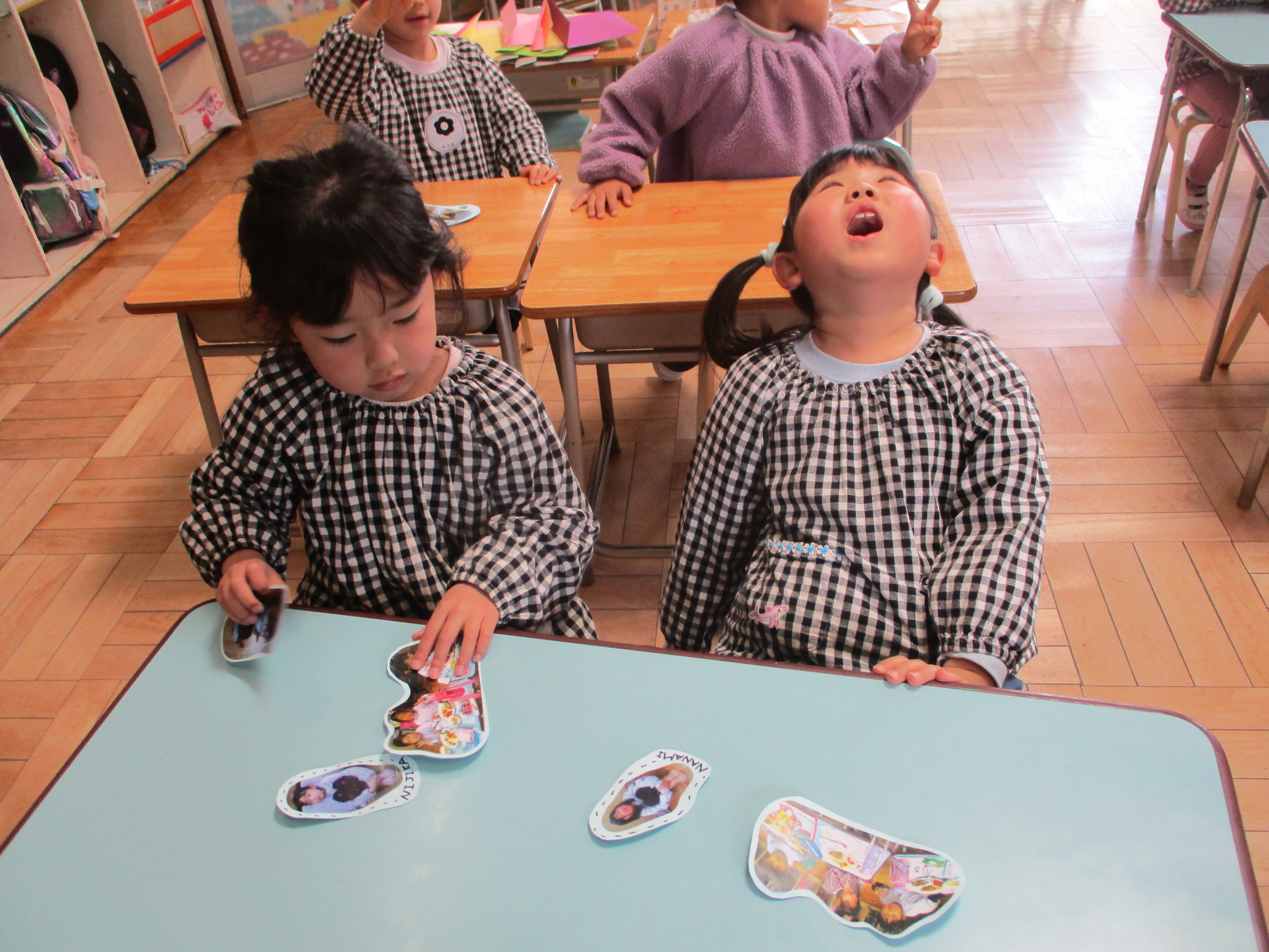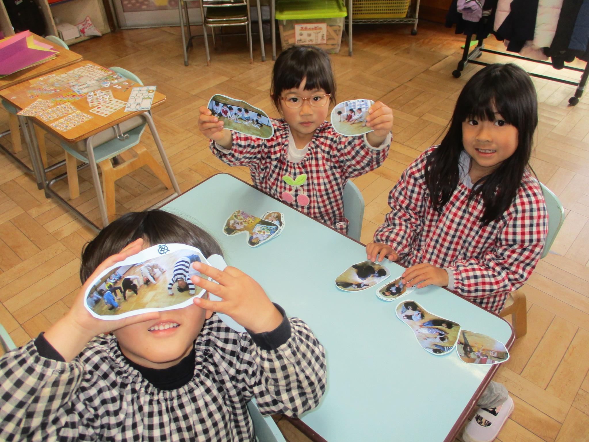 最後のたてわり保育は作品展に展示した写真を1人ずつコラージュしました。