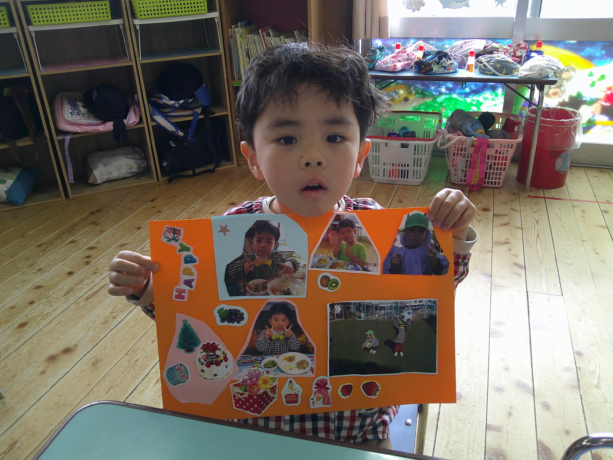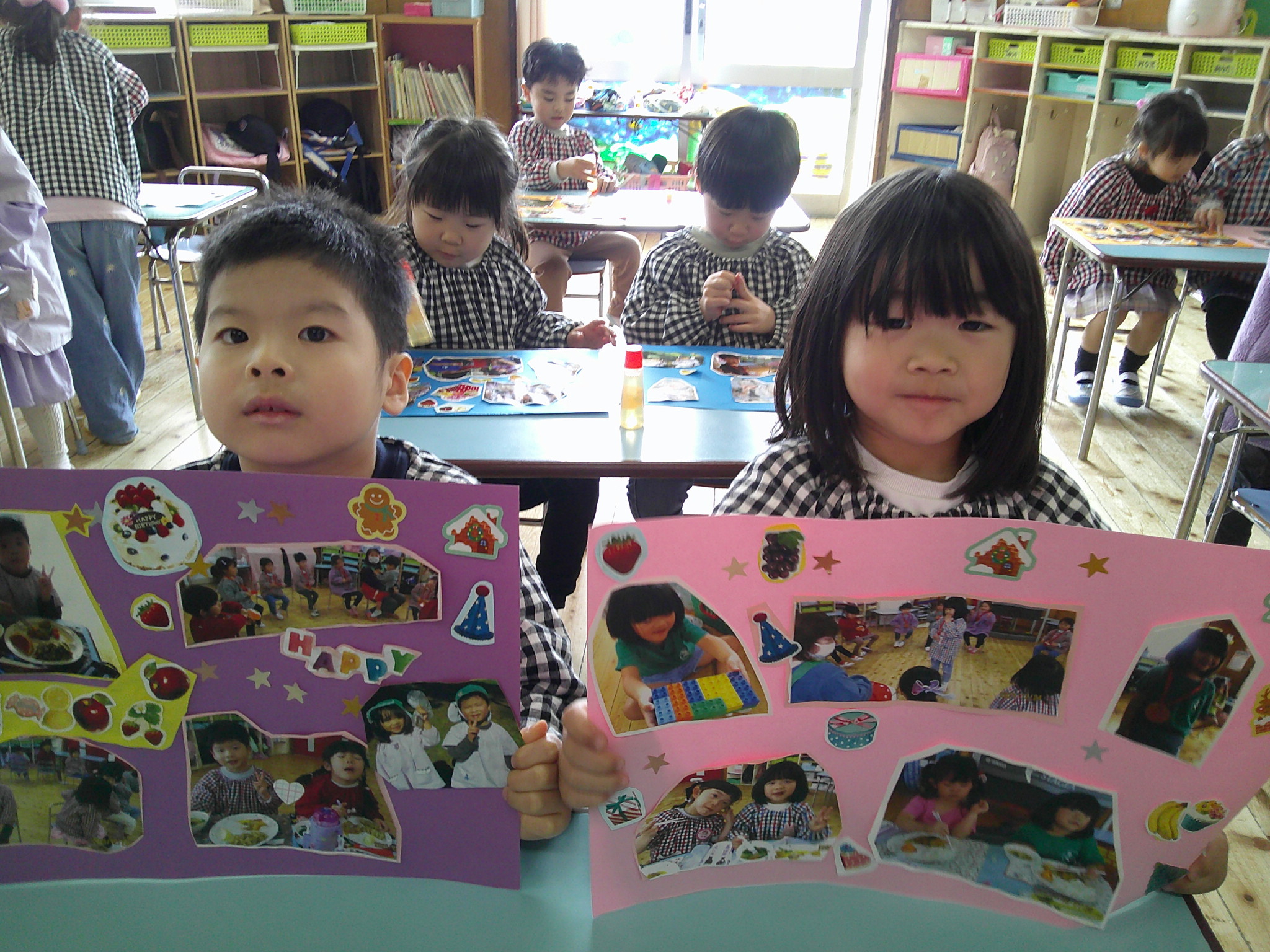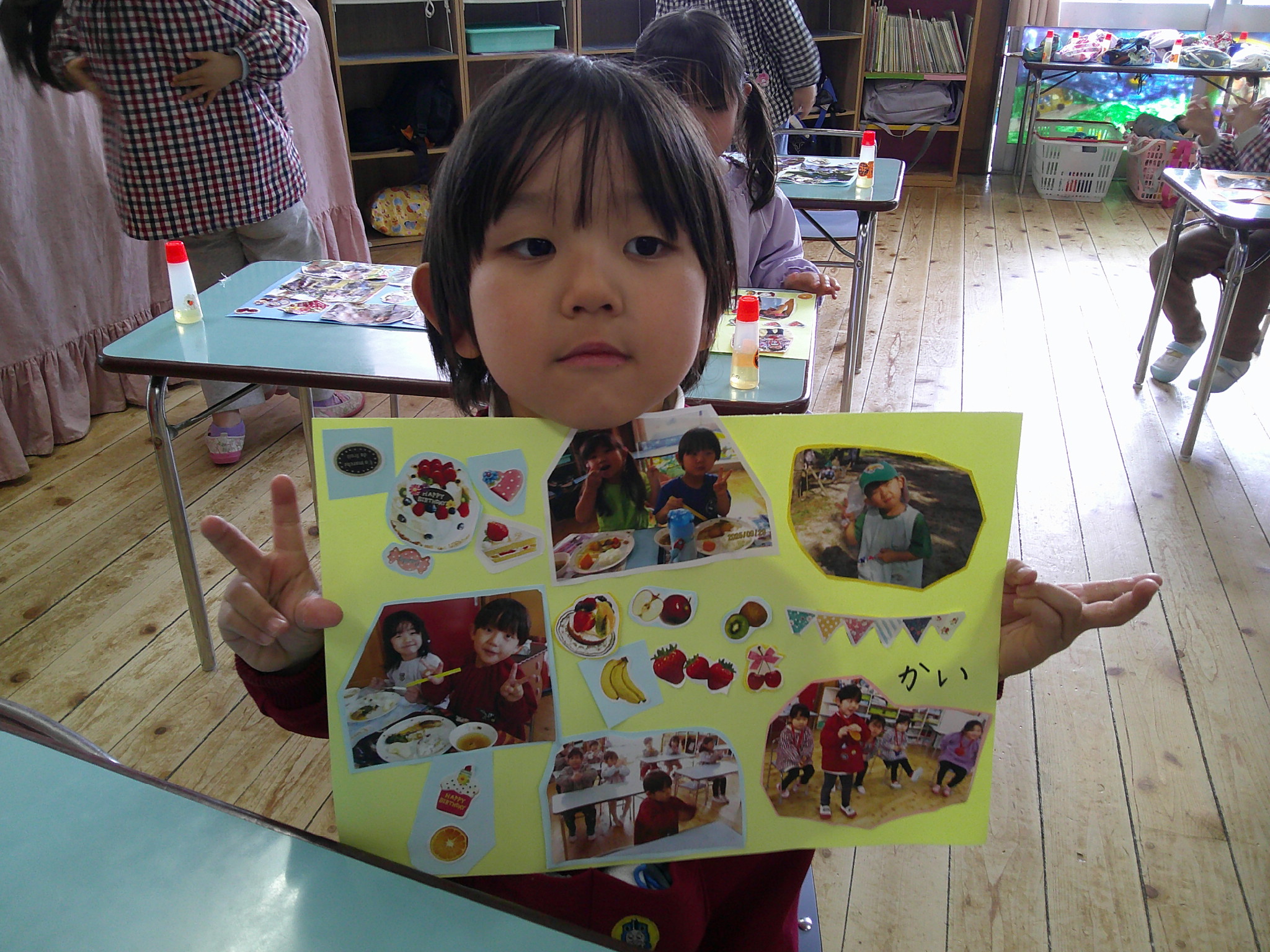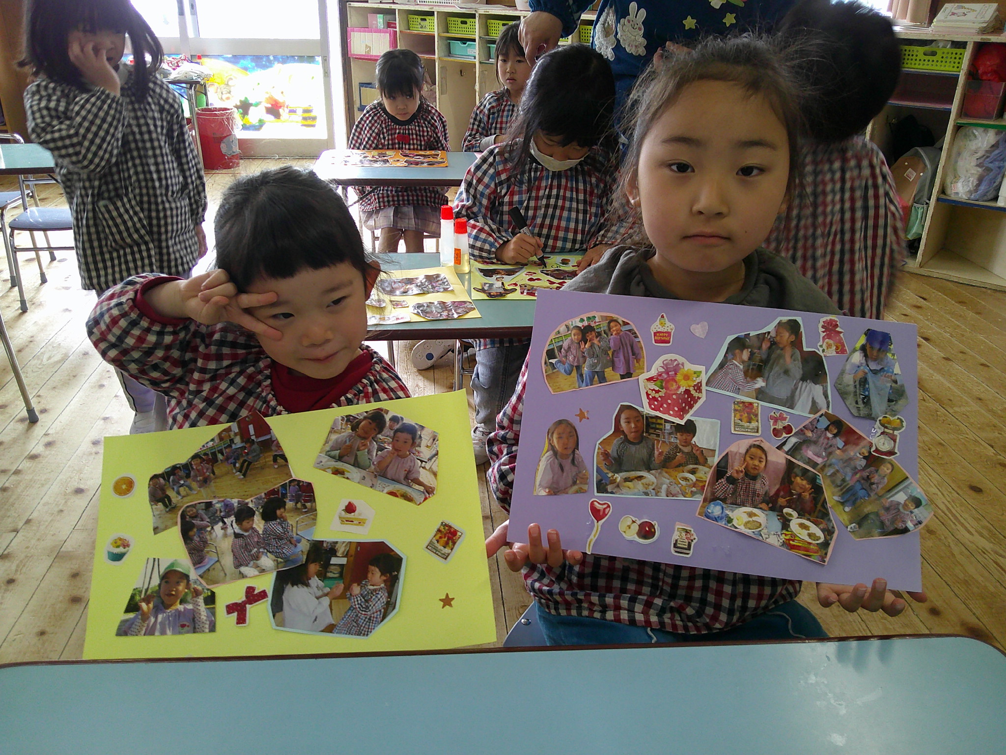 最後のたてわり保育は作品展に展示した写真を1人ずつコラージュしました。