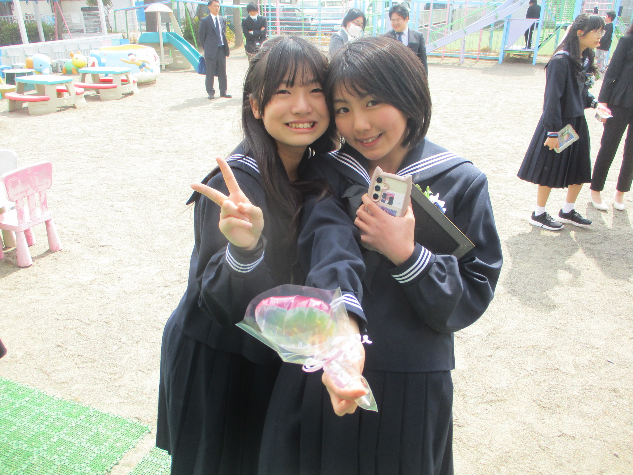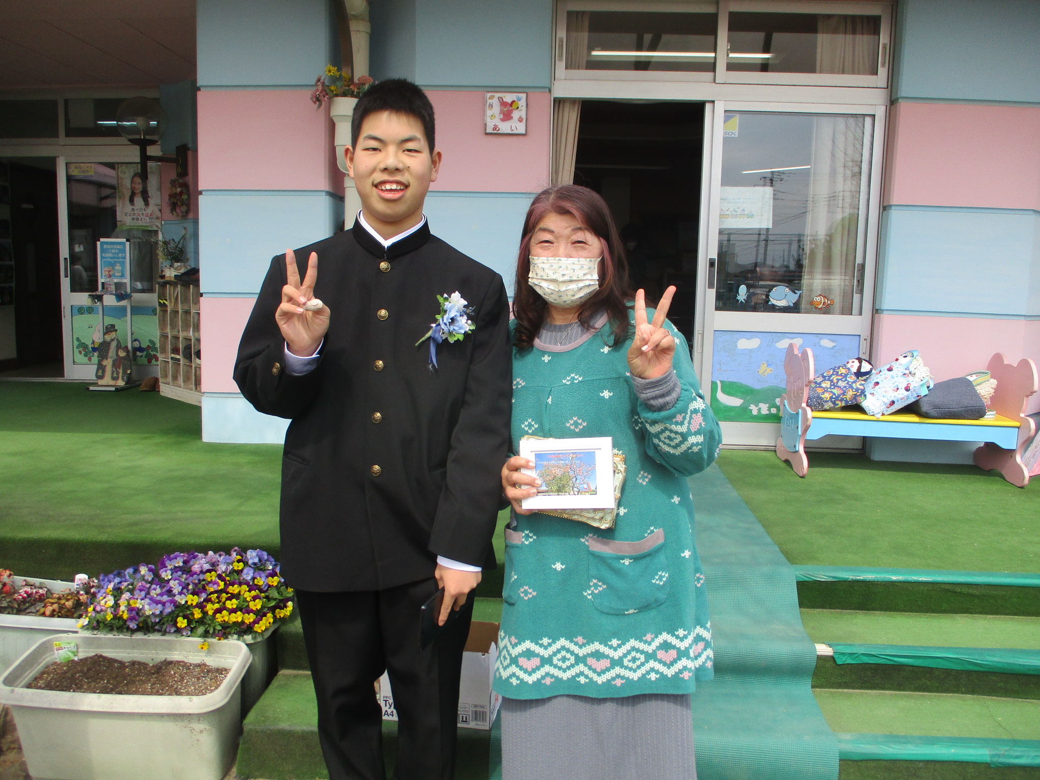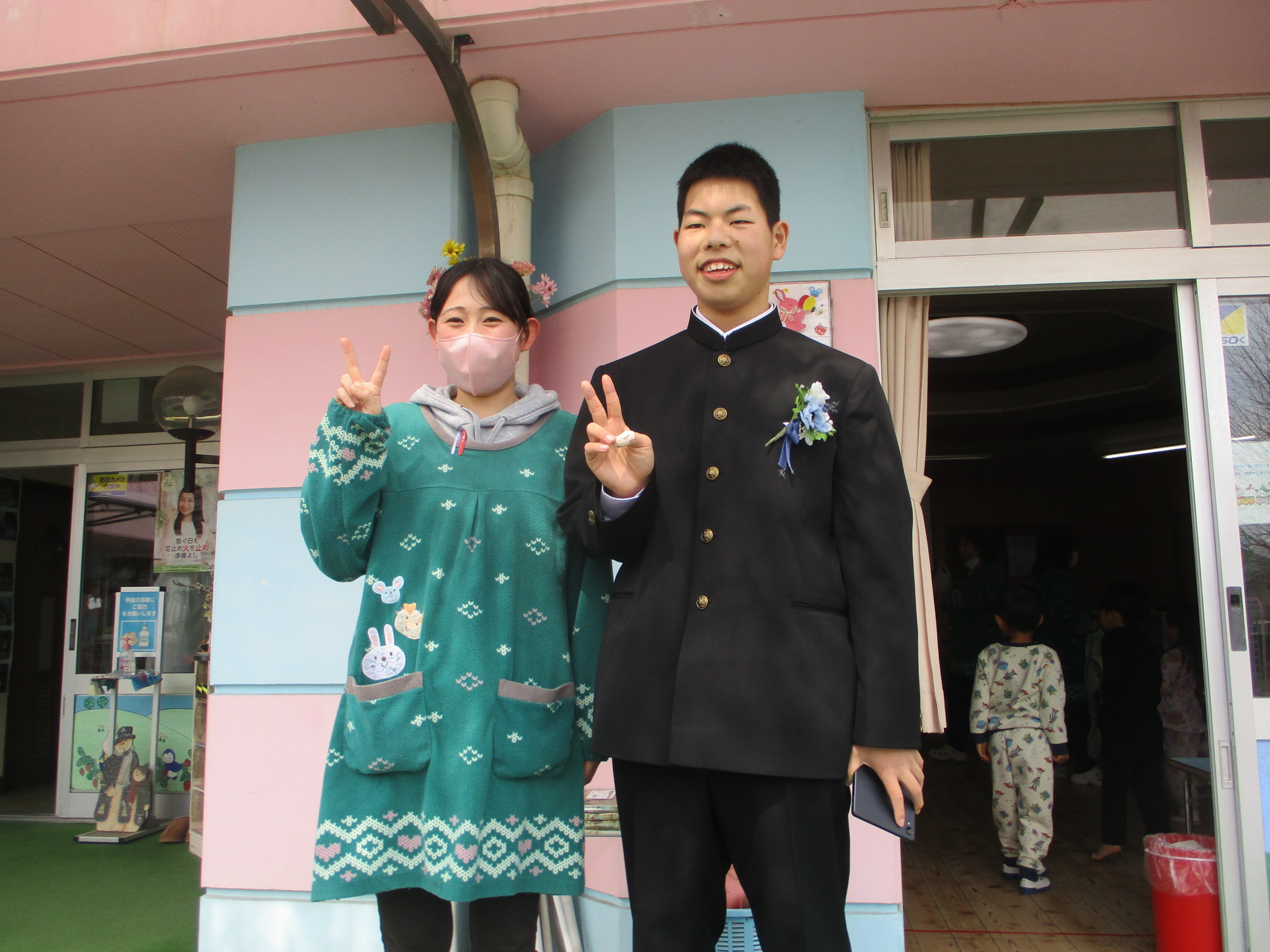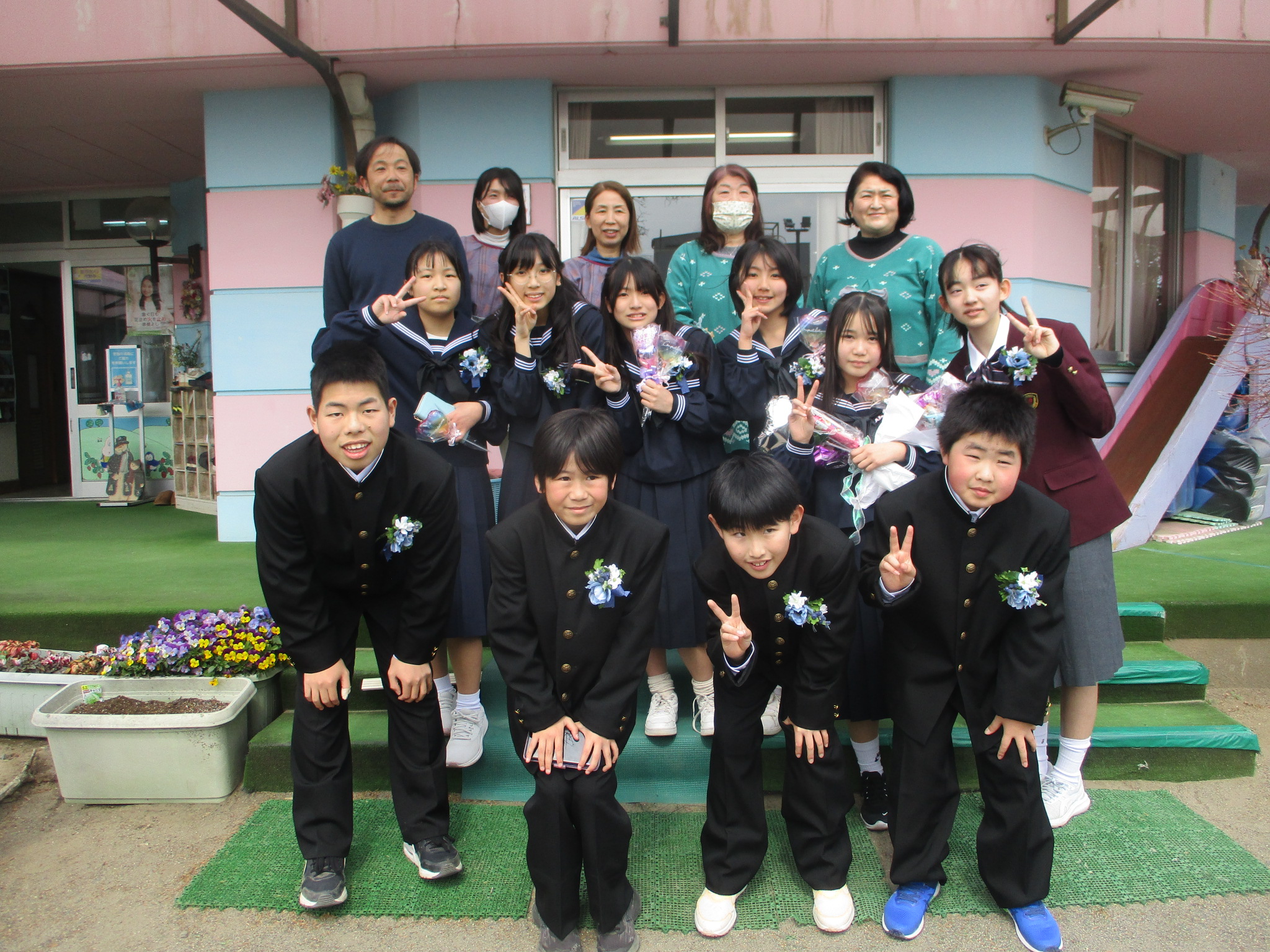 小学校の卒業式後、来園してくれました。中学校でも楽しい学校生活を送ってくれることをお祈りいたします。