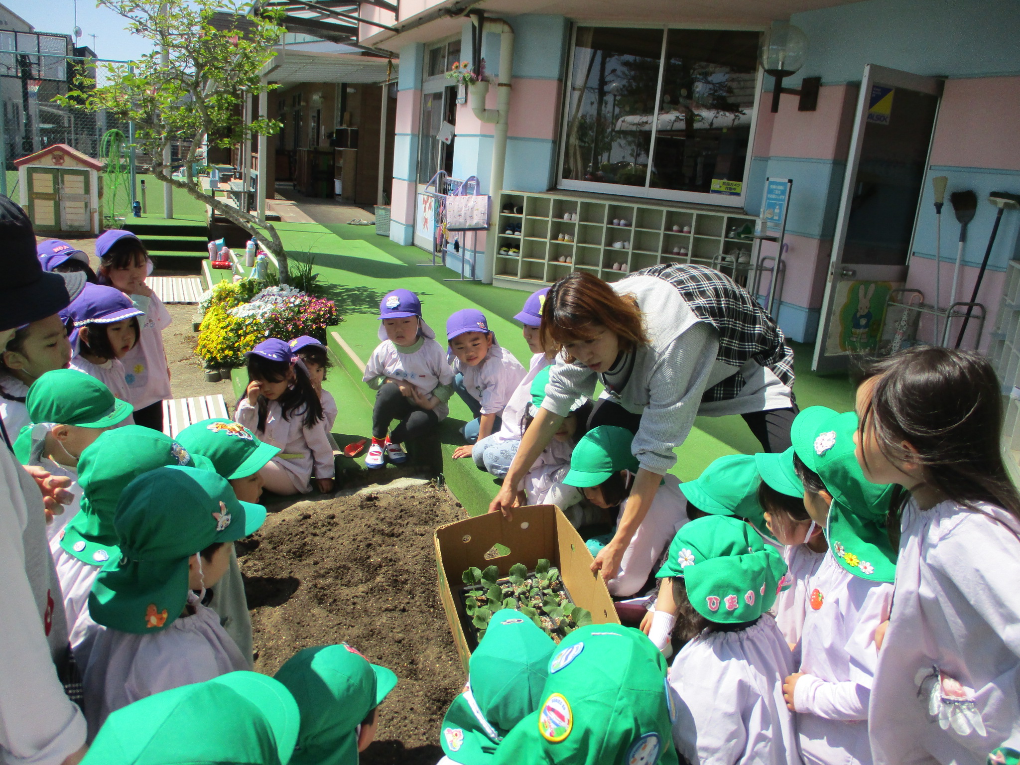 光望組いっしょにピーナッツとカボチャの苗を植えました。