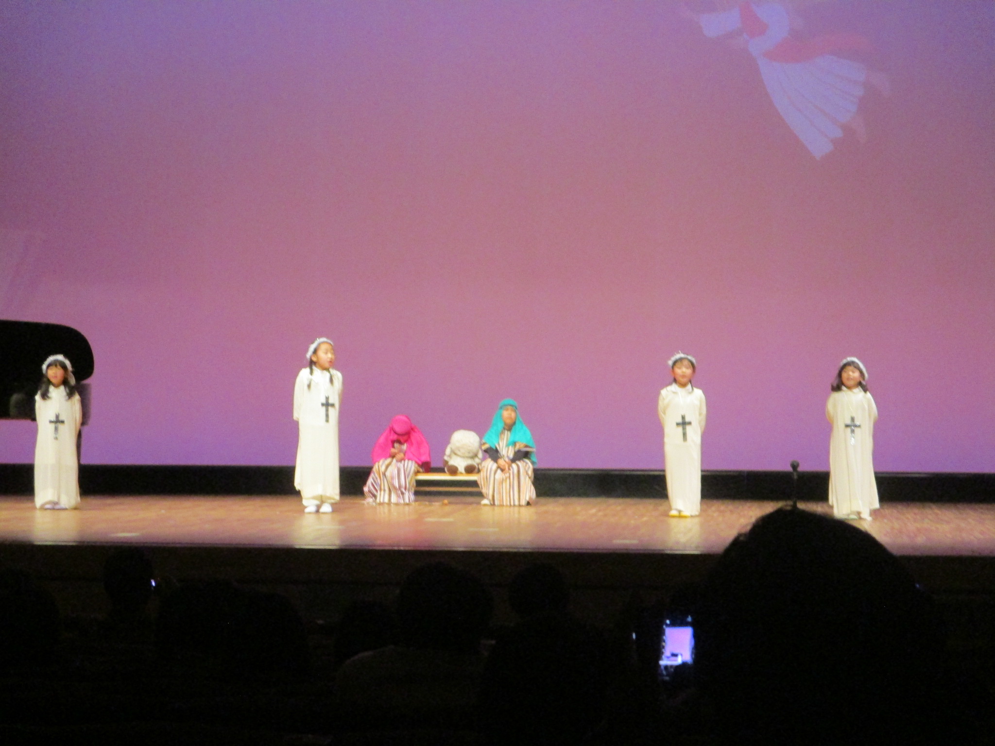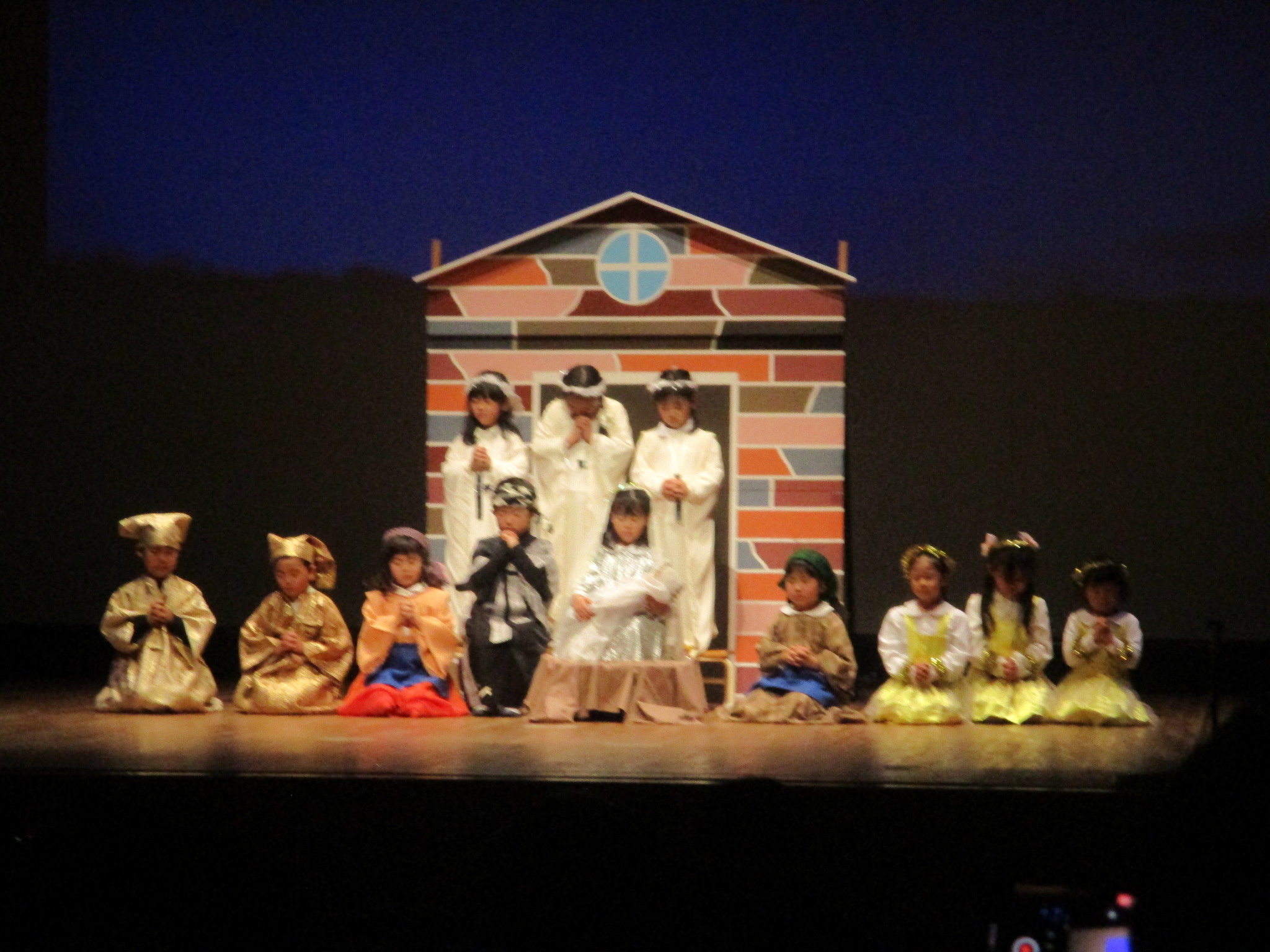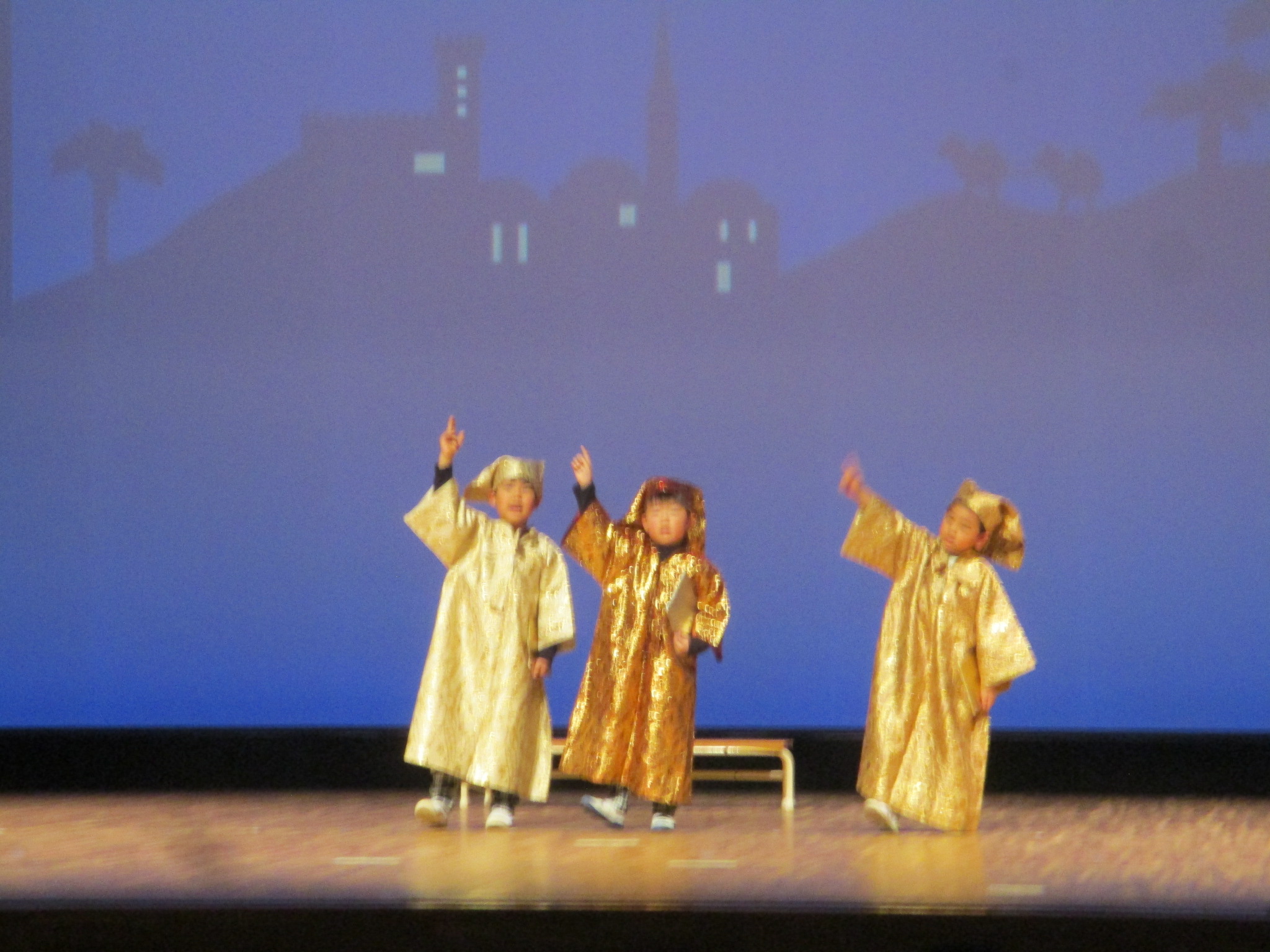 初めてのホールでのクリスマス礼拝に緊張や不安になる子もいましたが、最後まで楽しく