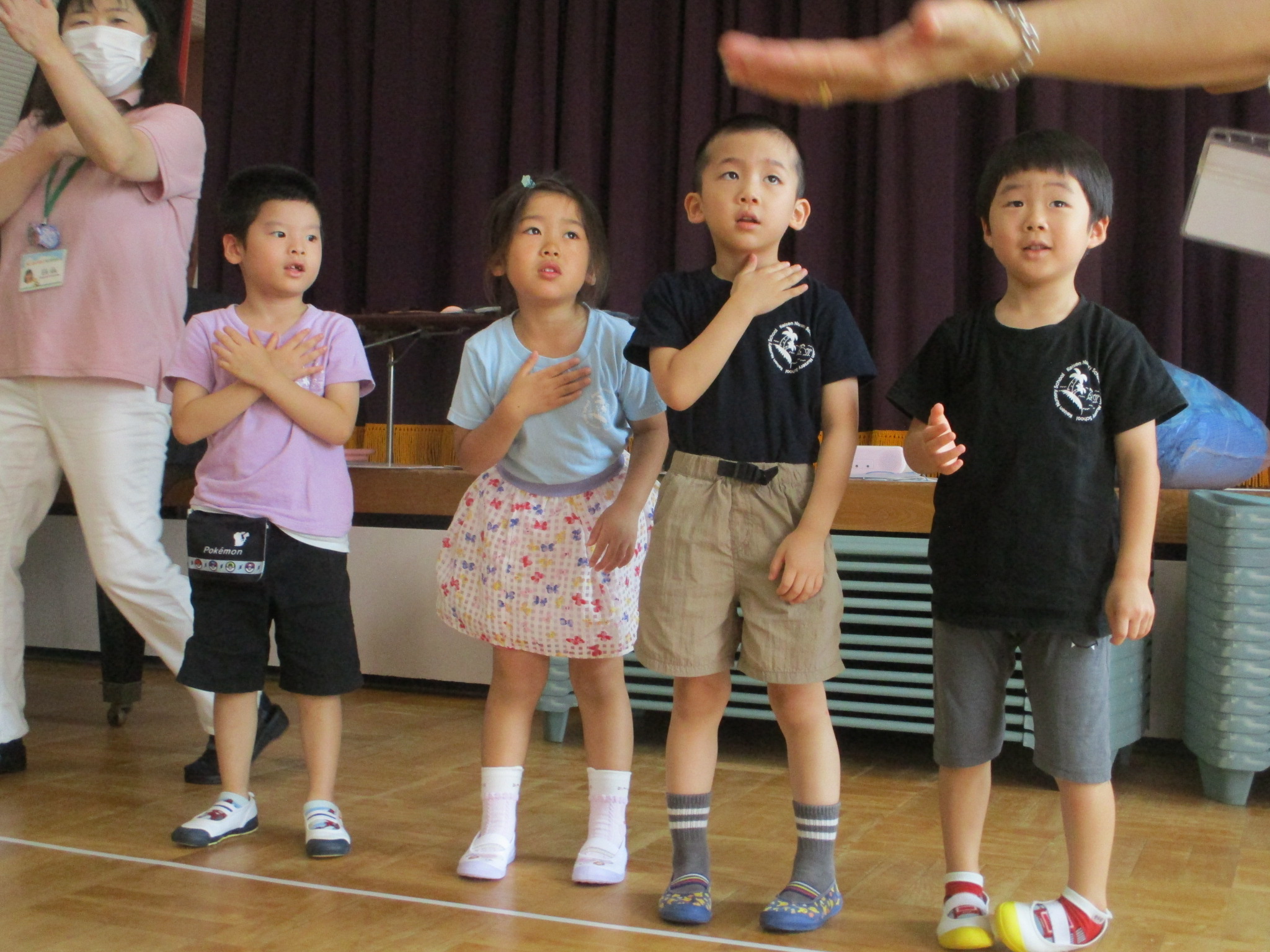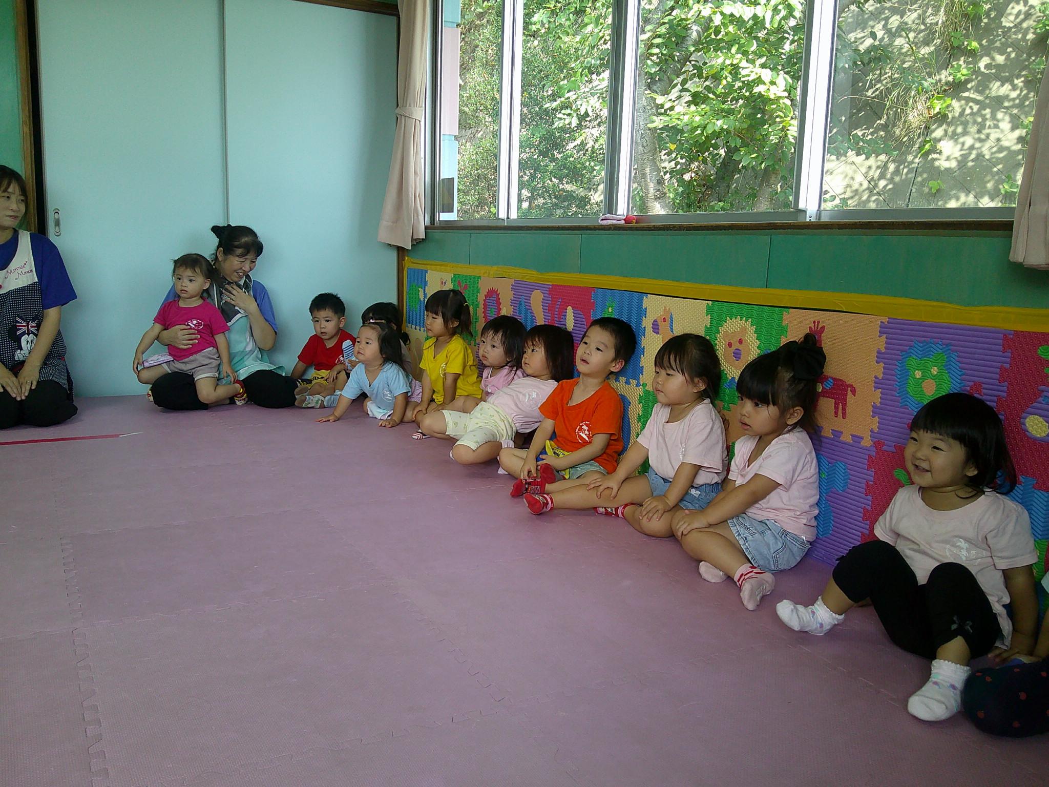 静かに礼拝を行い。たくさん歌って楽しく手遊びをした後、みんなで円になって座りました。