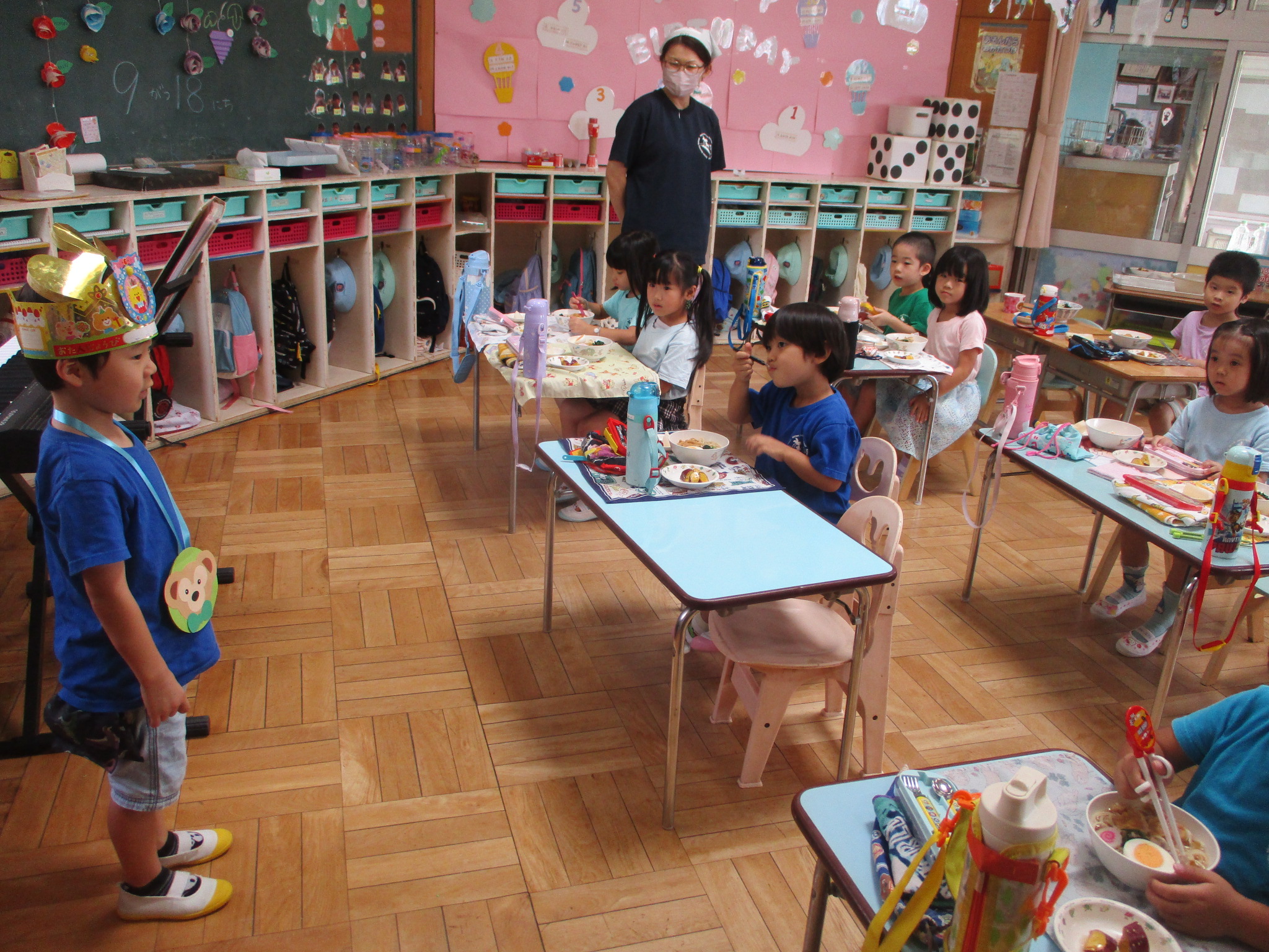 初めてのたてわり保育なので、自己紹介をして名前と好きな給食を発表しました。