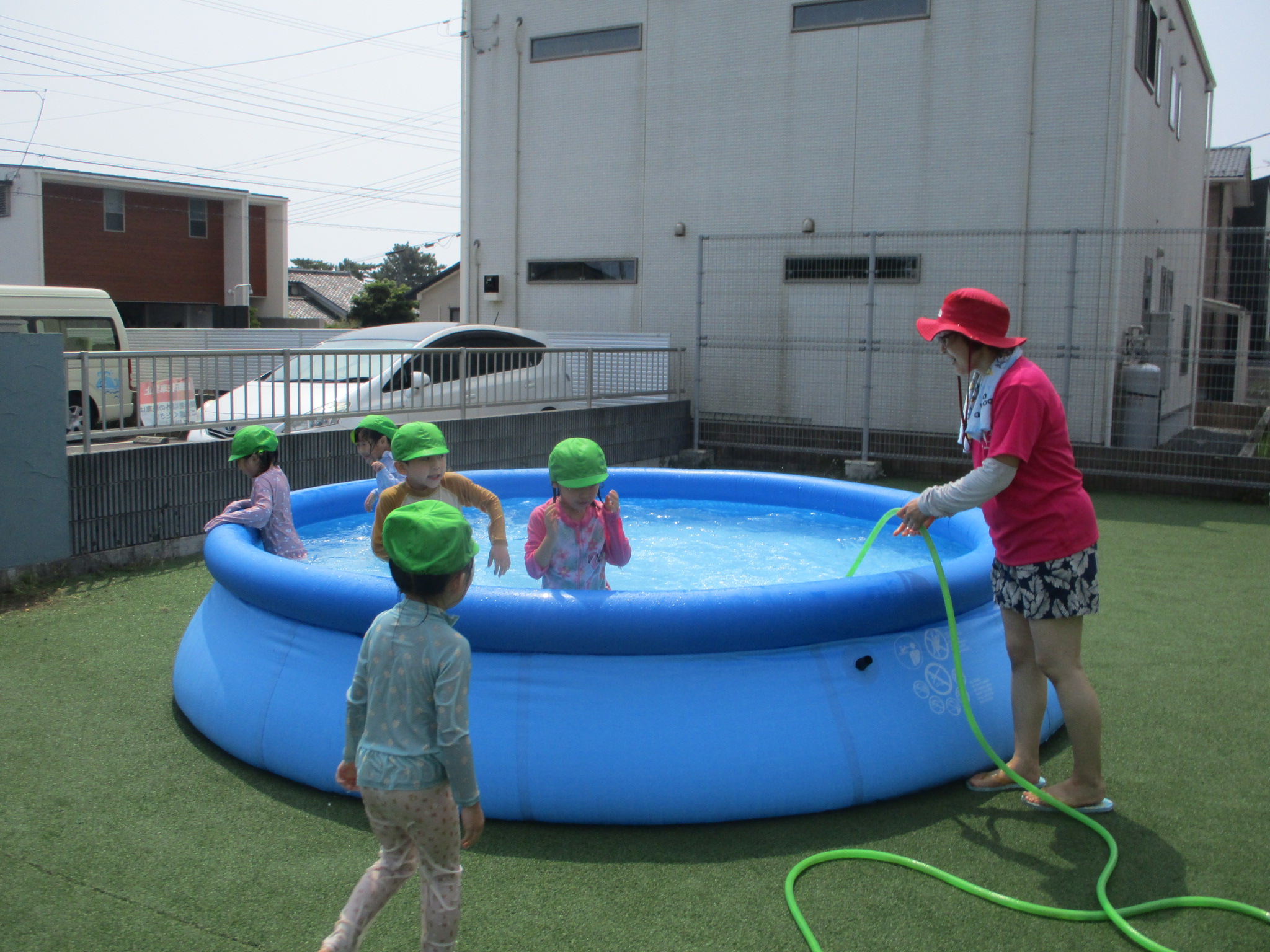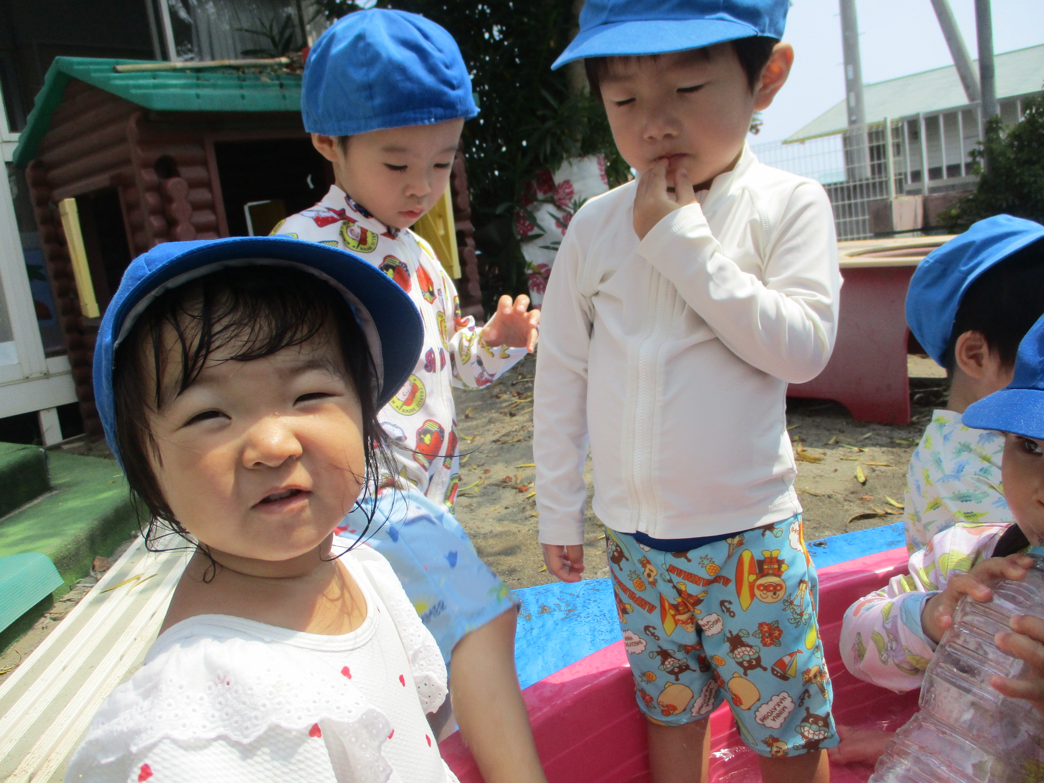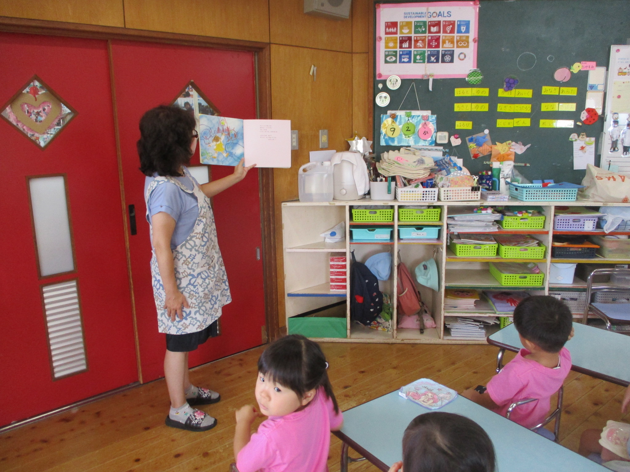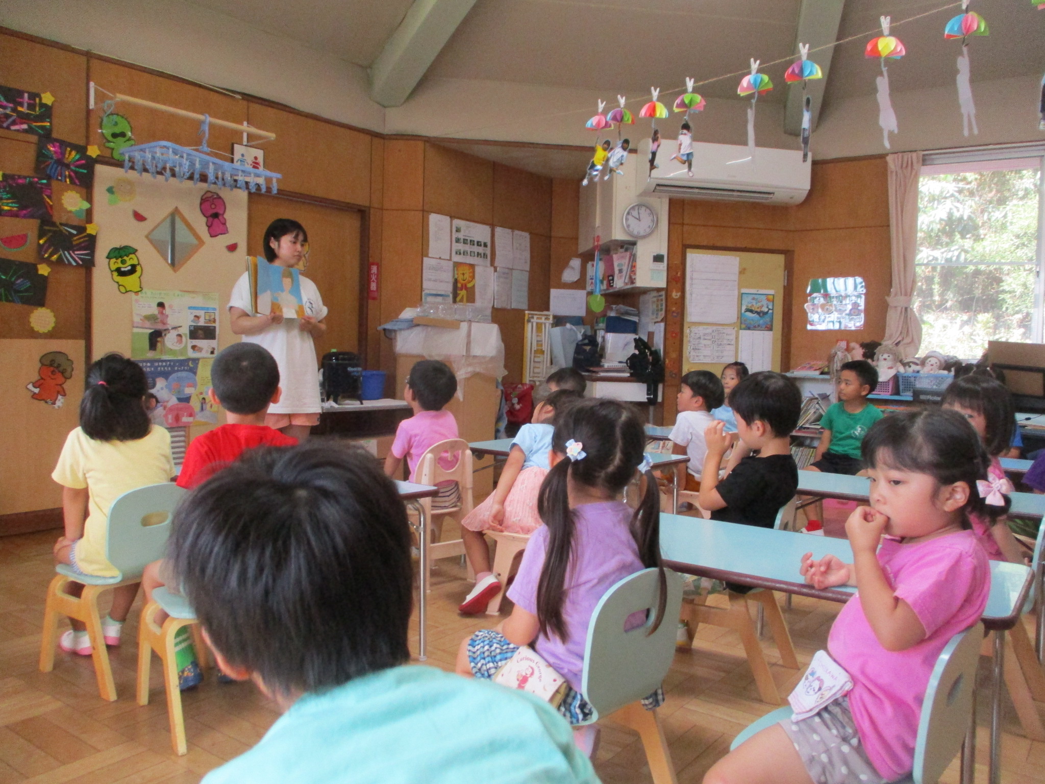 外気温が高いため、避難場所までは行かずに警報~園庭に集合までの流れと注意点を確認しました。