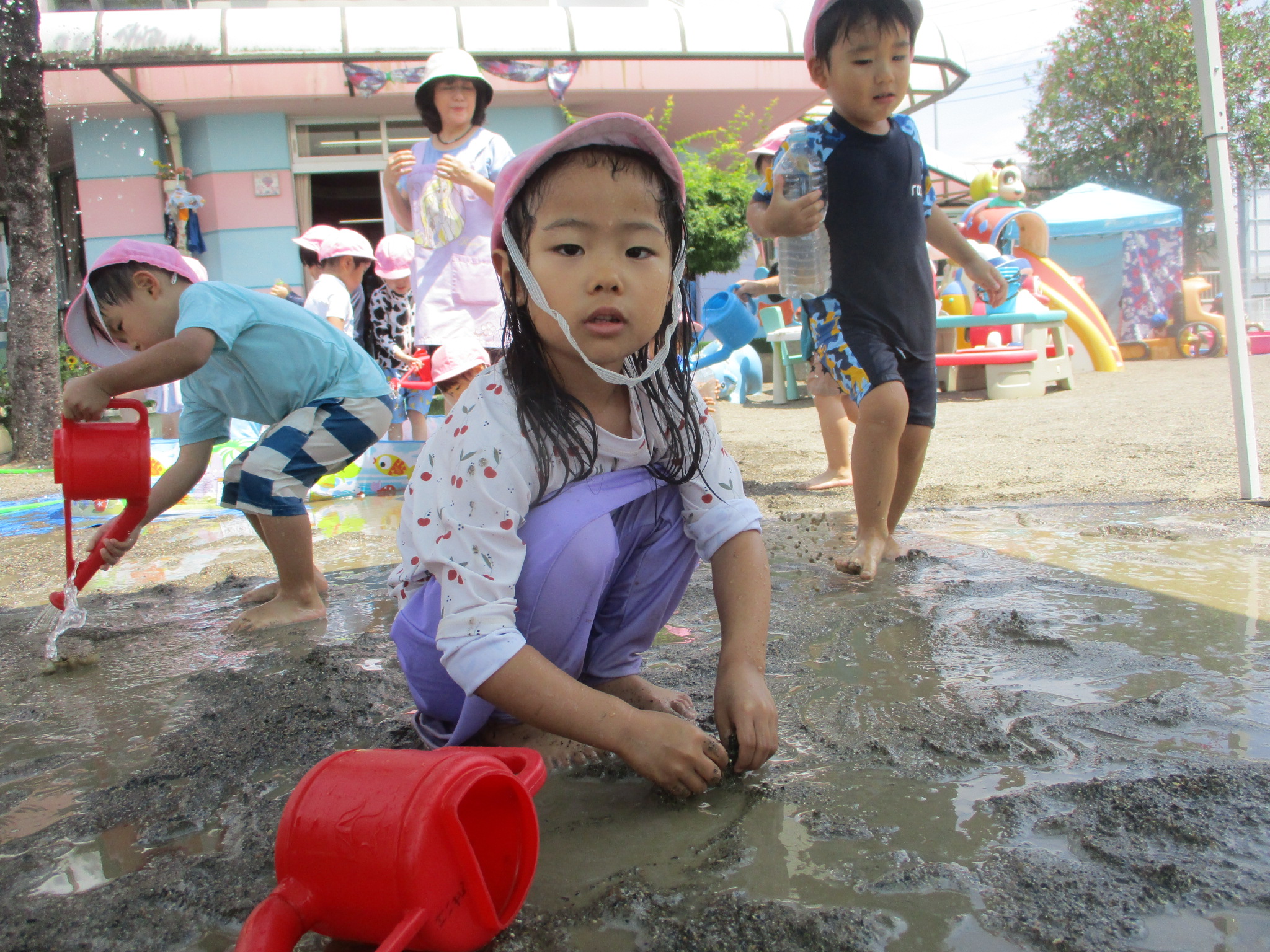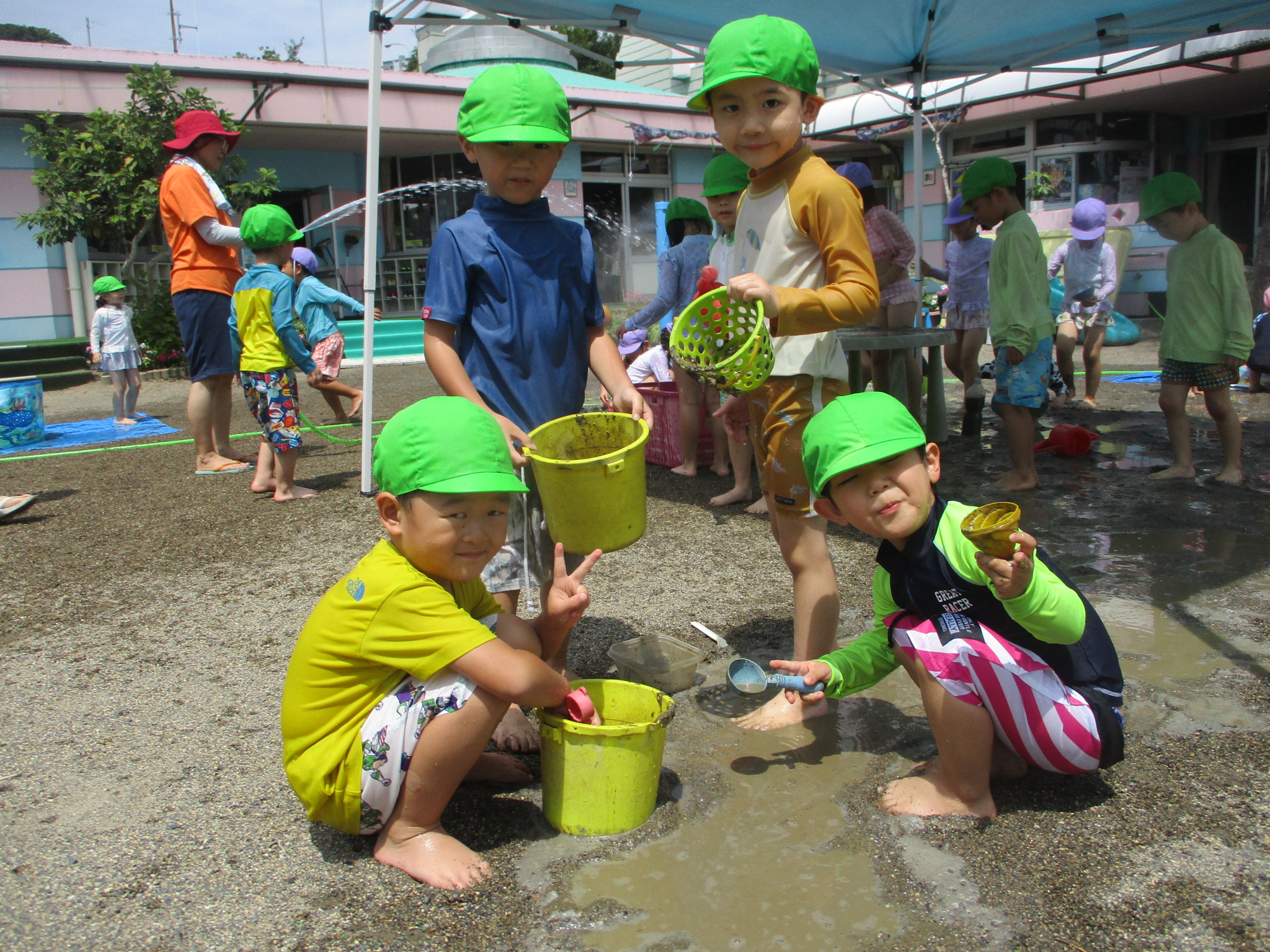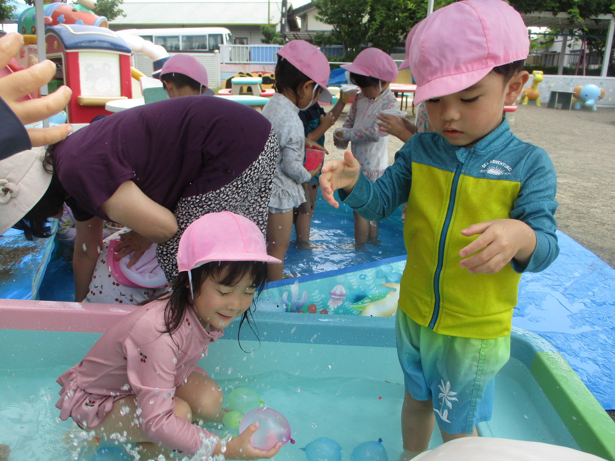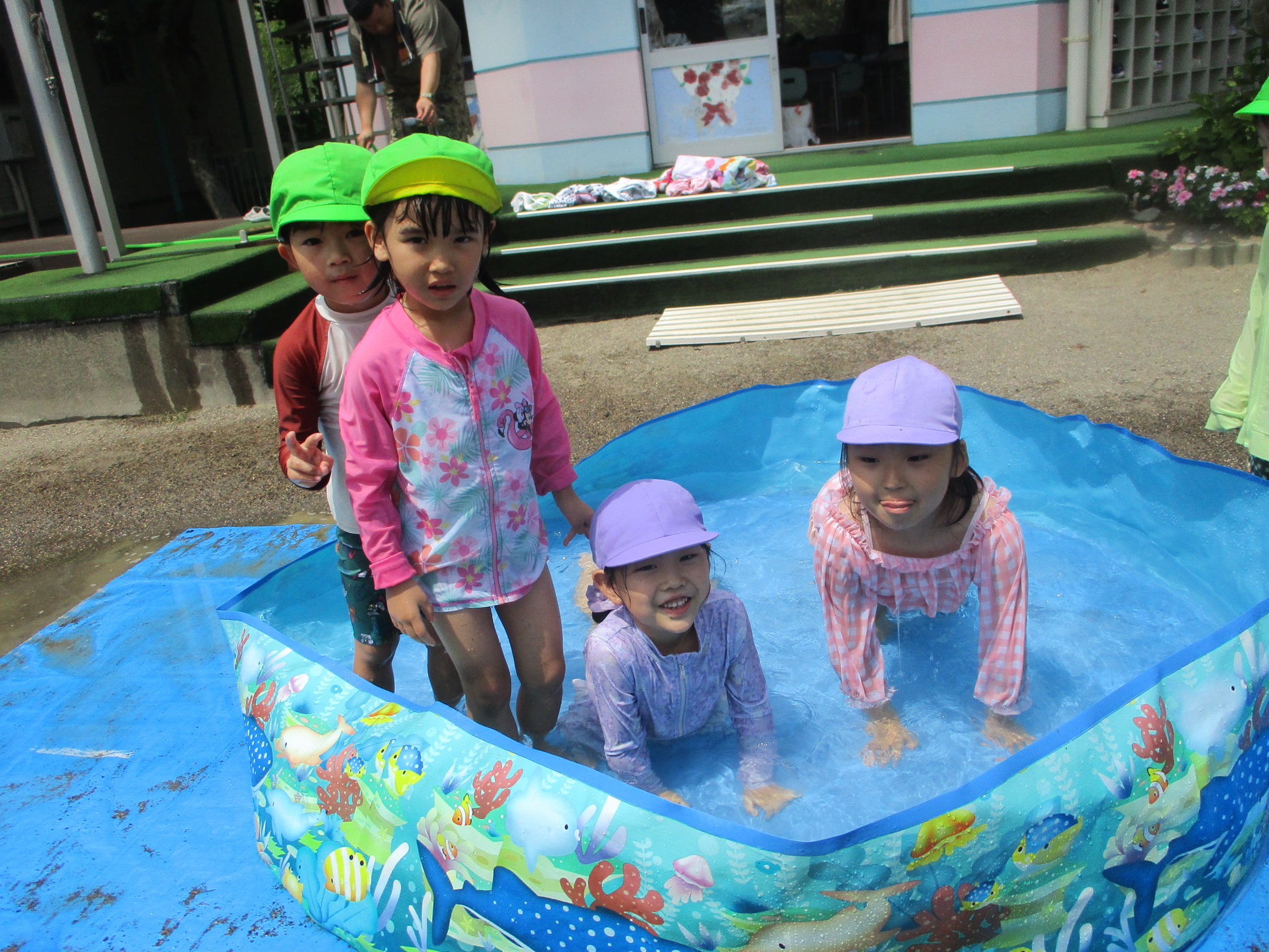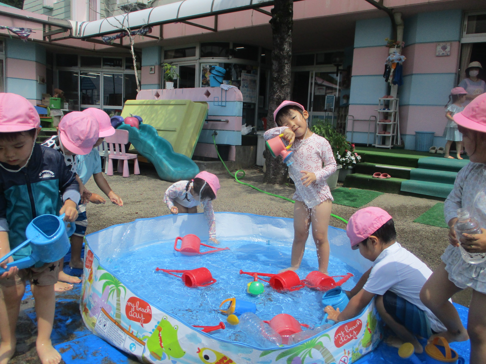 つぼみの組も学童プールで遊びました。