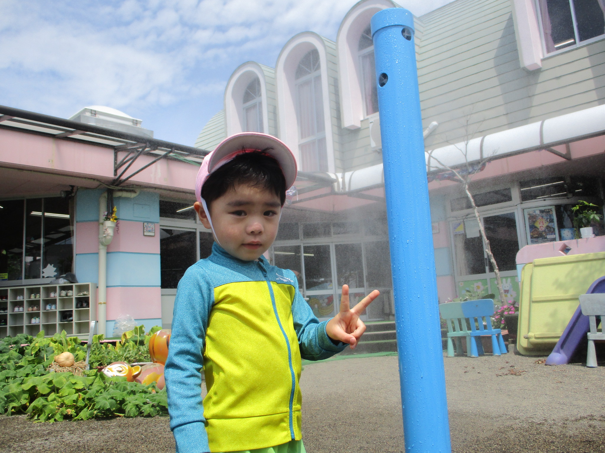 実施しました。ミストから虹が出る様子を楽しんでいました。