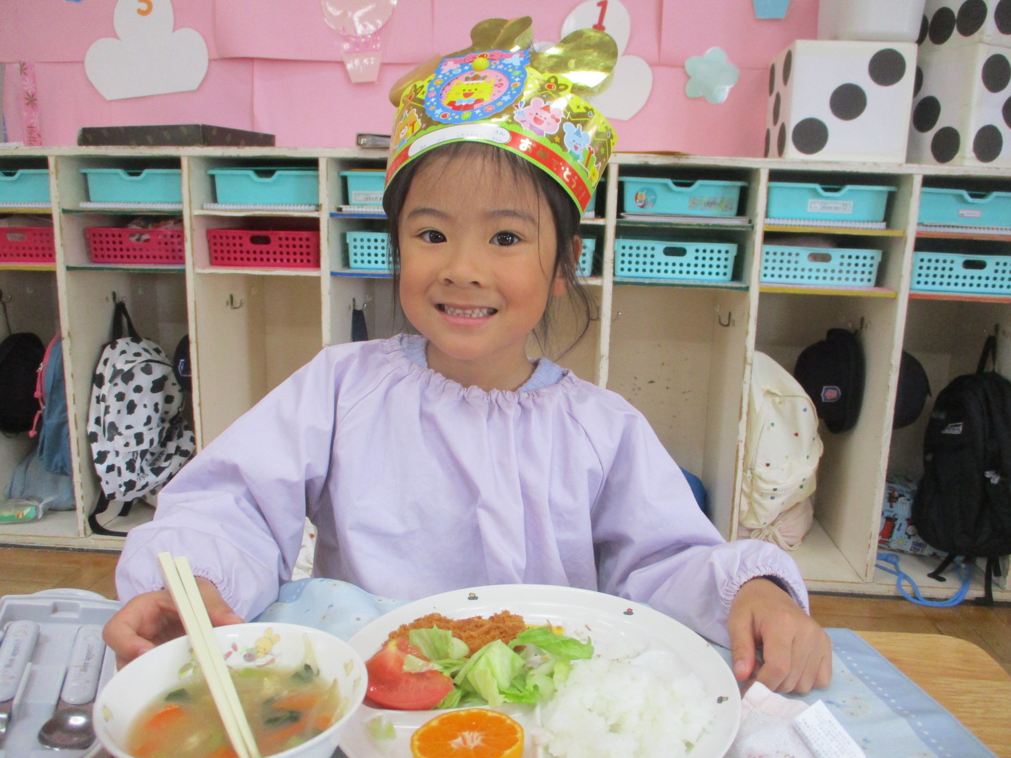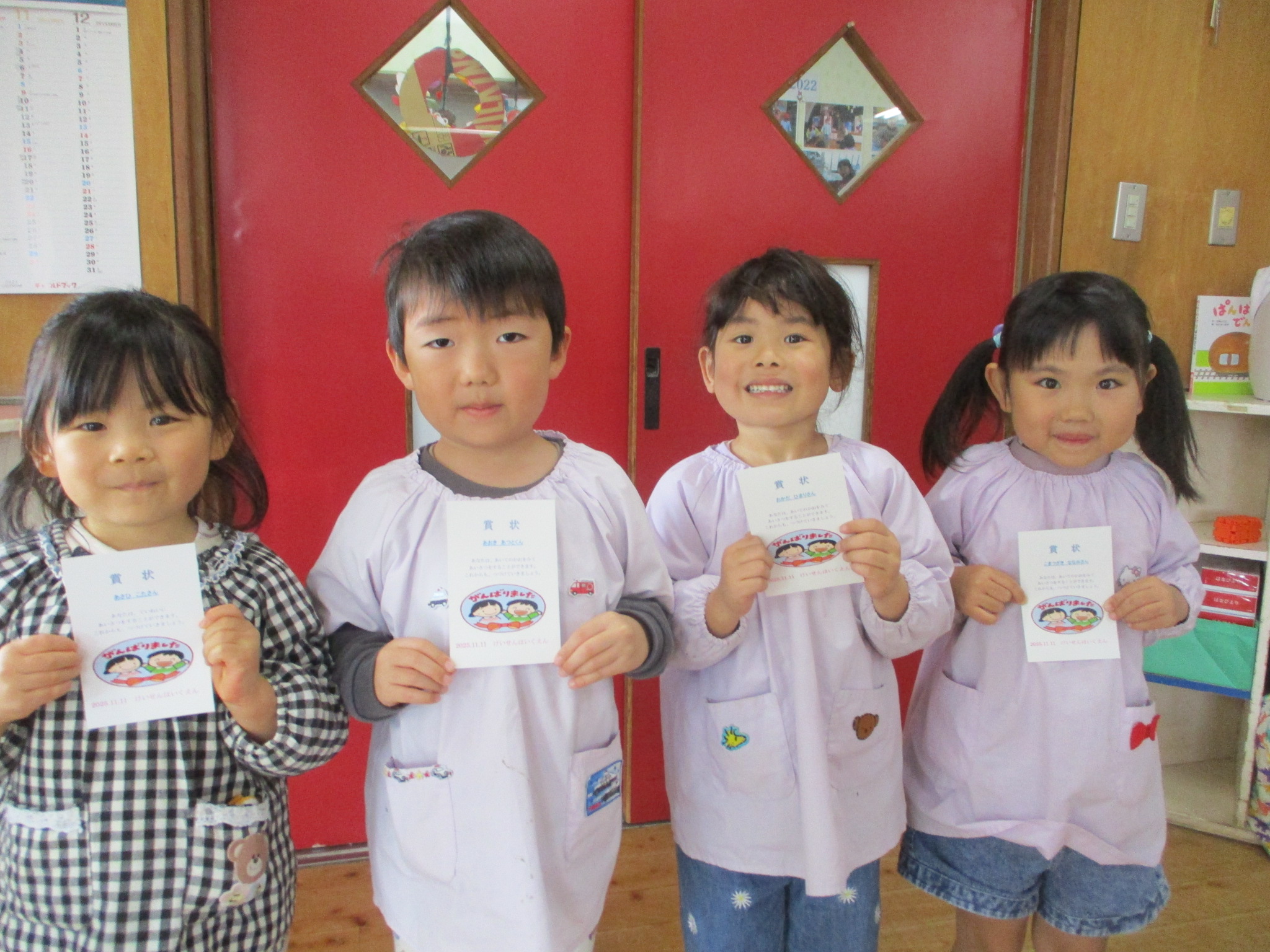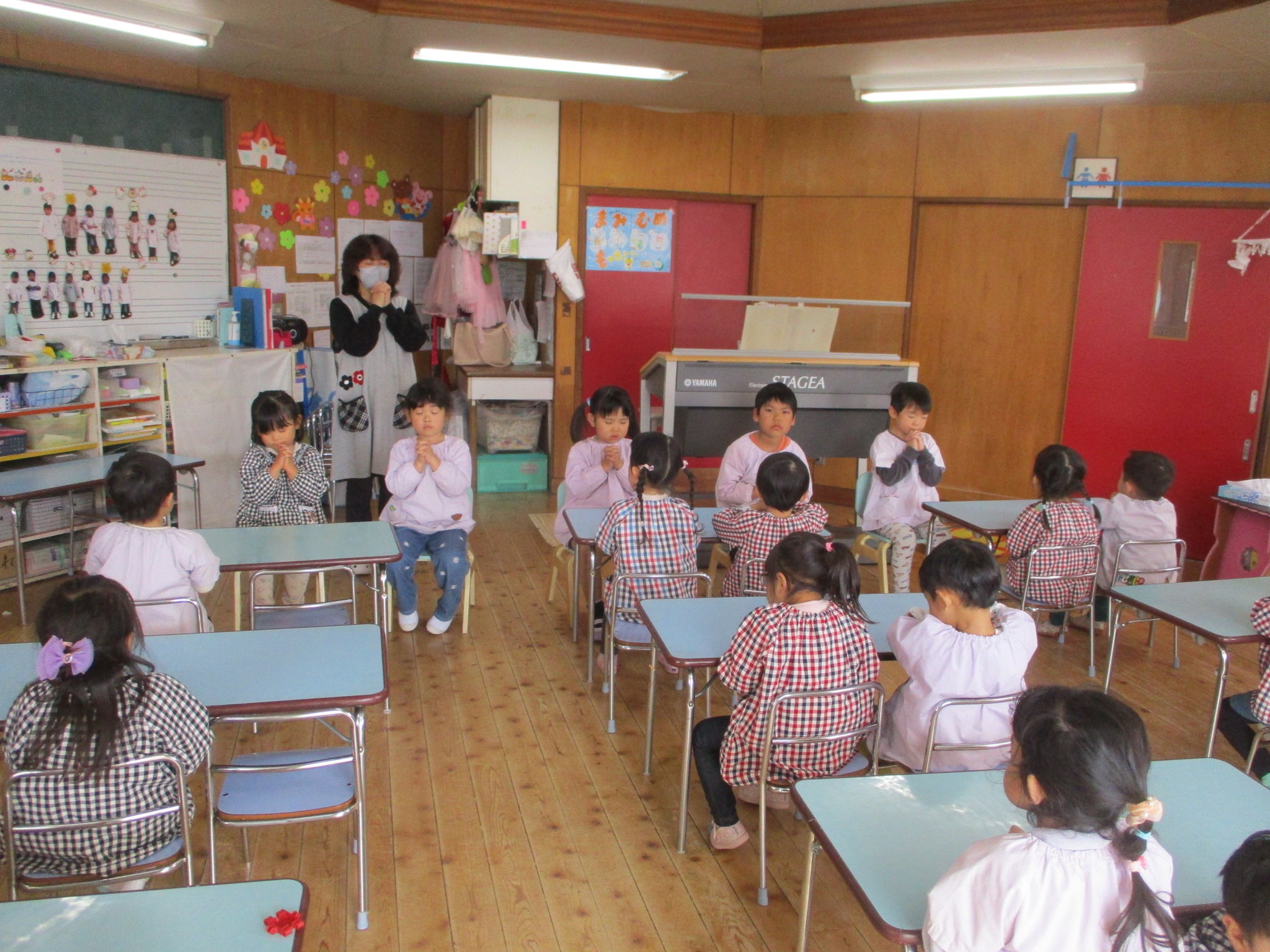 たくさんのおじいちゃんおばあちゃんに参加して頂き、歌の発表やふれあい遊び、かるたやけん玉などの昔遊びを皆で楽しむことができました。その後美味しい給食もみんなで囲みながらこども達も