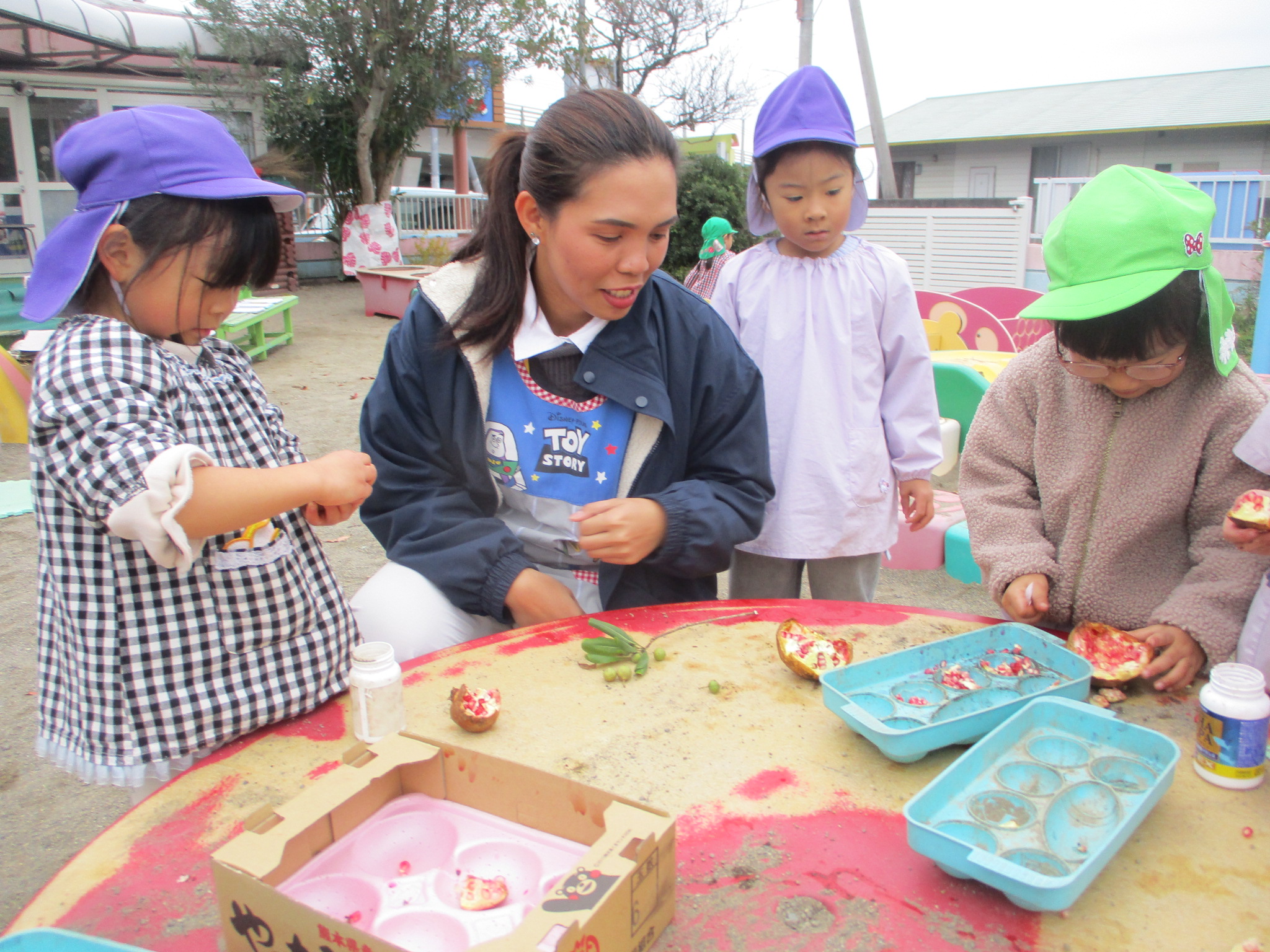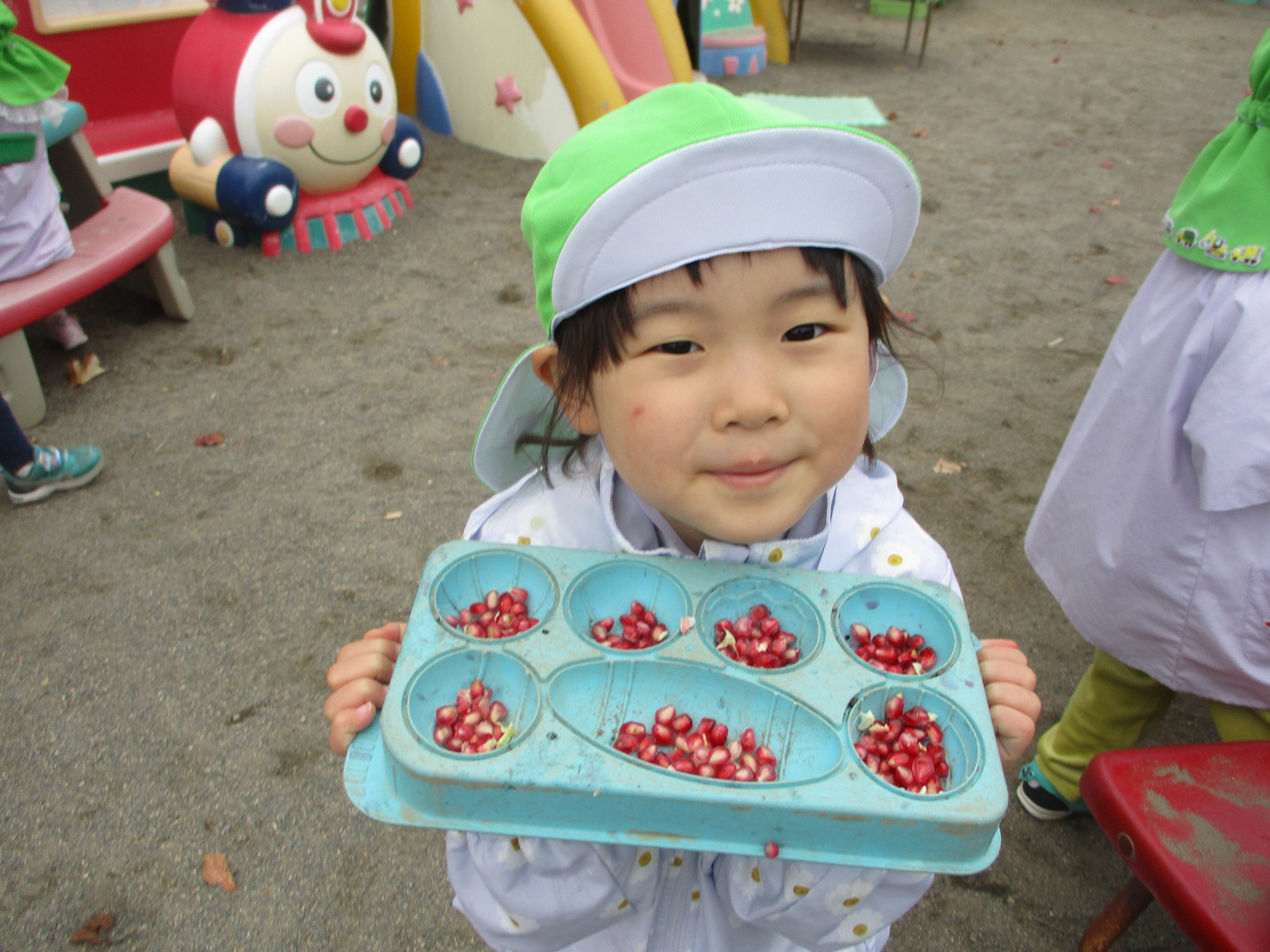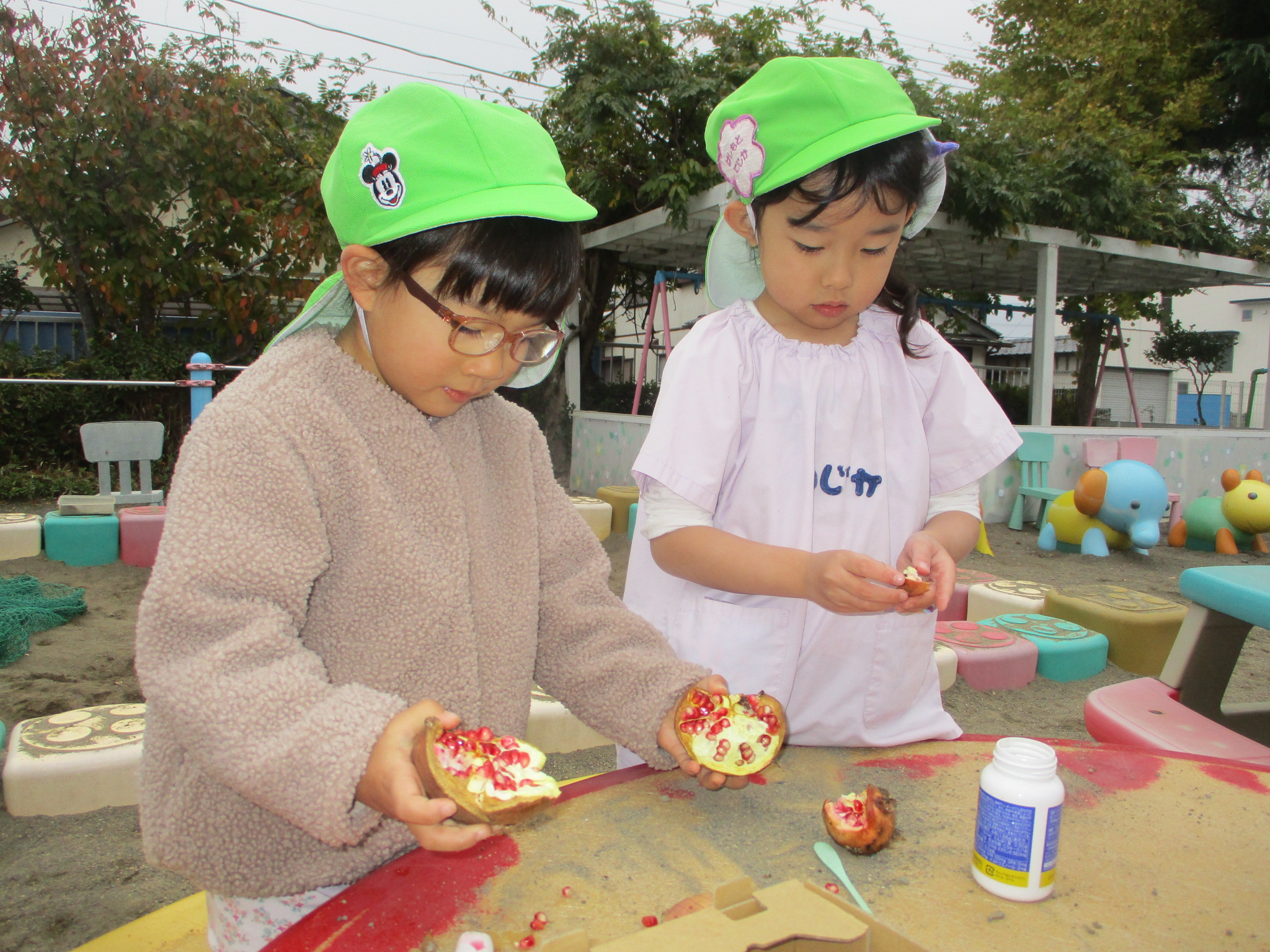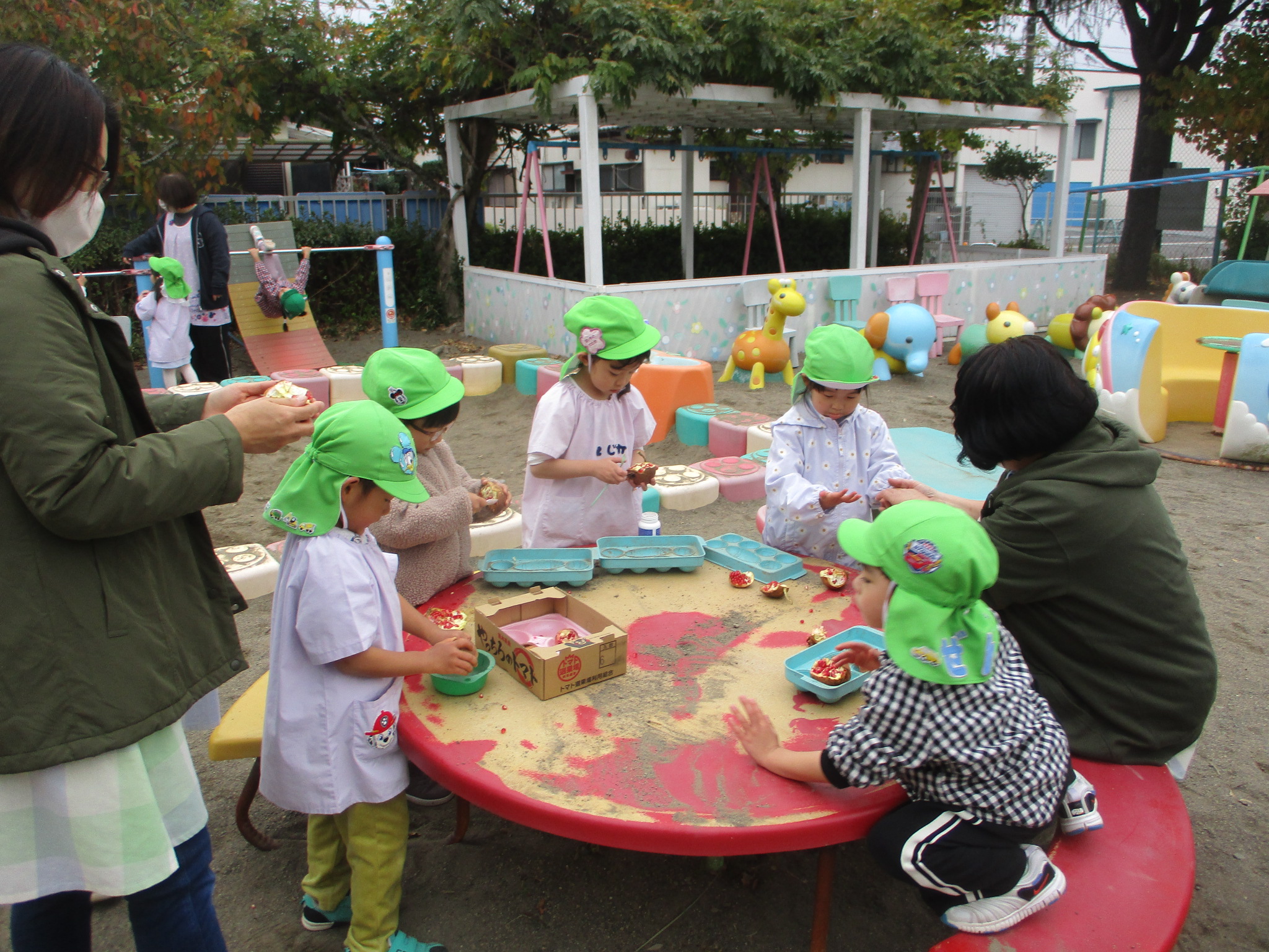 落ち葉を拾って花束にしたり、ストローを使って製作をしたりとみんなで楽しく遊べました。